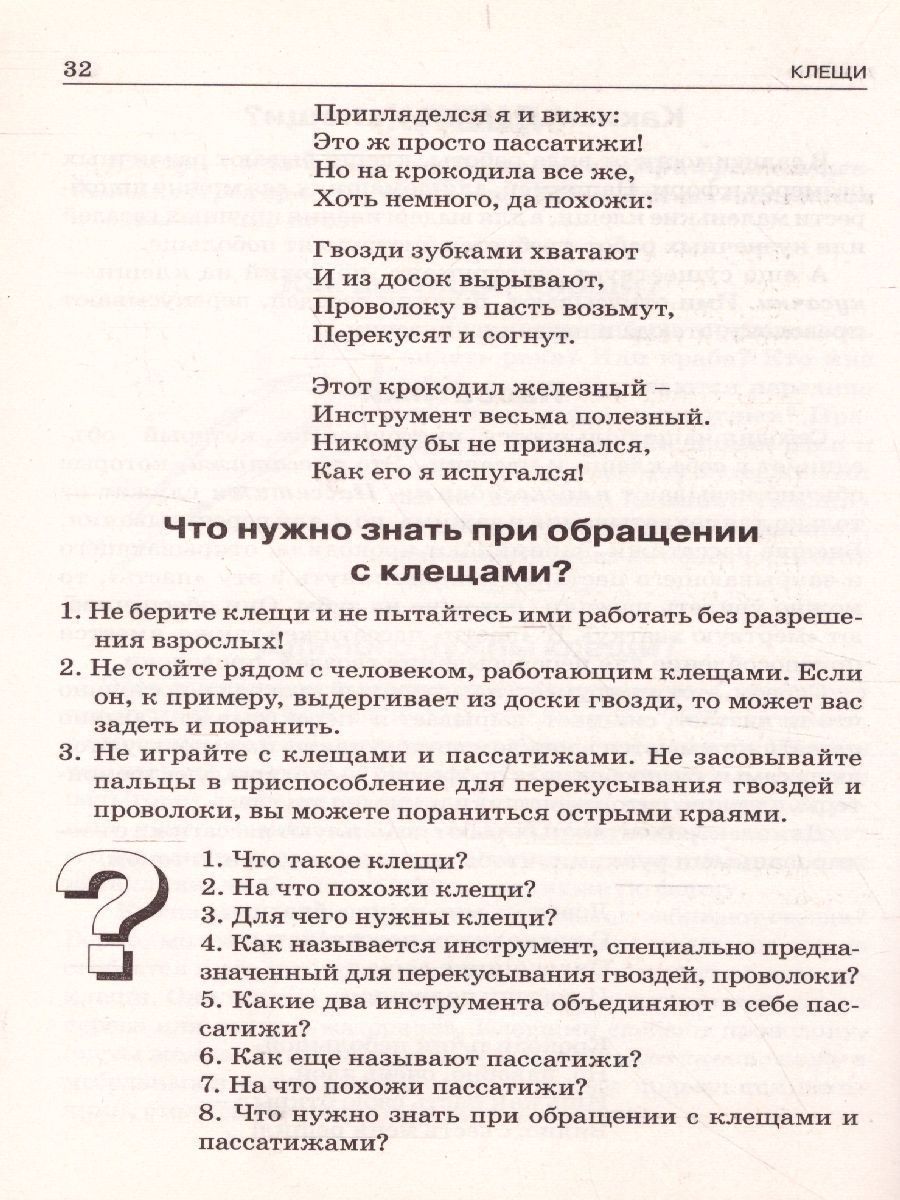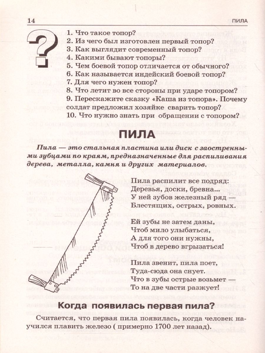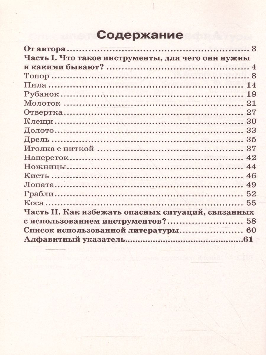 В пособии представлен оригинальный и интересный материал, необходимый для знакомства дошкольников с инструментами. Ребенок узнает о различных инструментах: топоре, пиле, лопате, граблях, ножницах, игле, кисти и т.д. Просто и доступно рассказывается об истории возникновения орудий труда, назначении каждого из них. Книга учит детей правильному обращению с инструментами и соблюдению осторожности. Стихи, рассказы, сказки автора, пословицы, поговорки и загадки об инструментах помогут детям лучше усвоить материал, расширить кругозор и обогатить словарный запас. Пособие предназначено для педагогов ДОУ, гувернеров и родителей. Может быть использовано при коллективной и индивидуальной формах обучения.Характеристики
