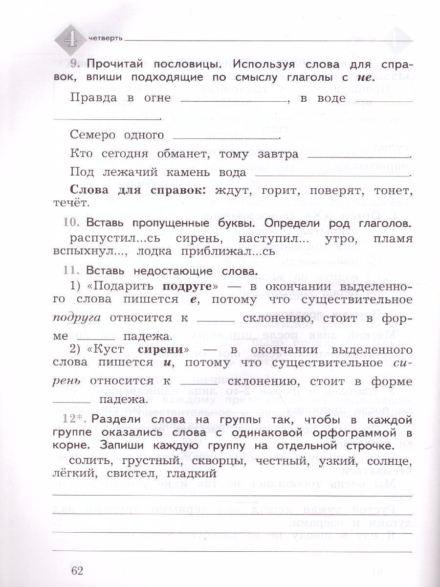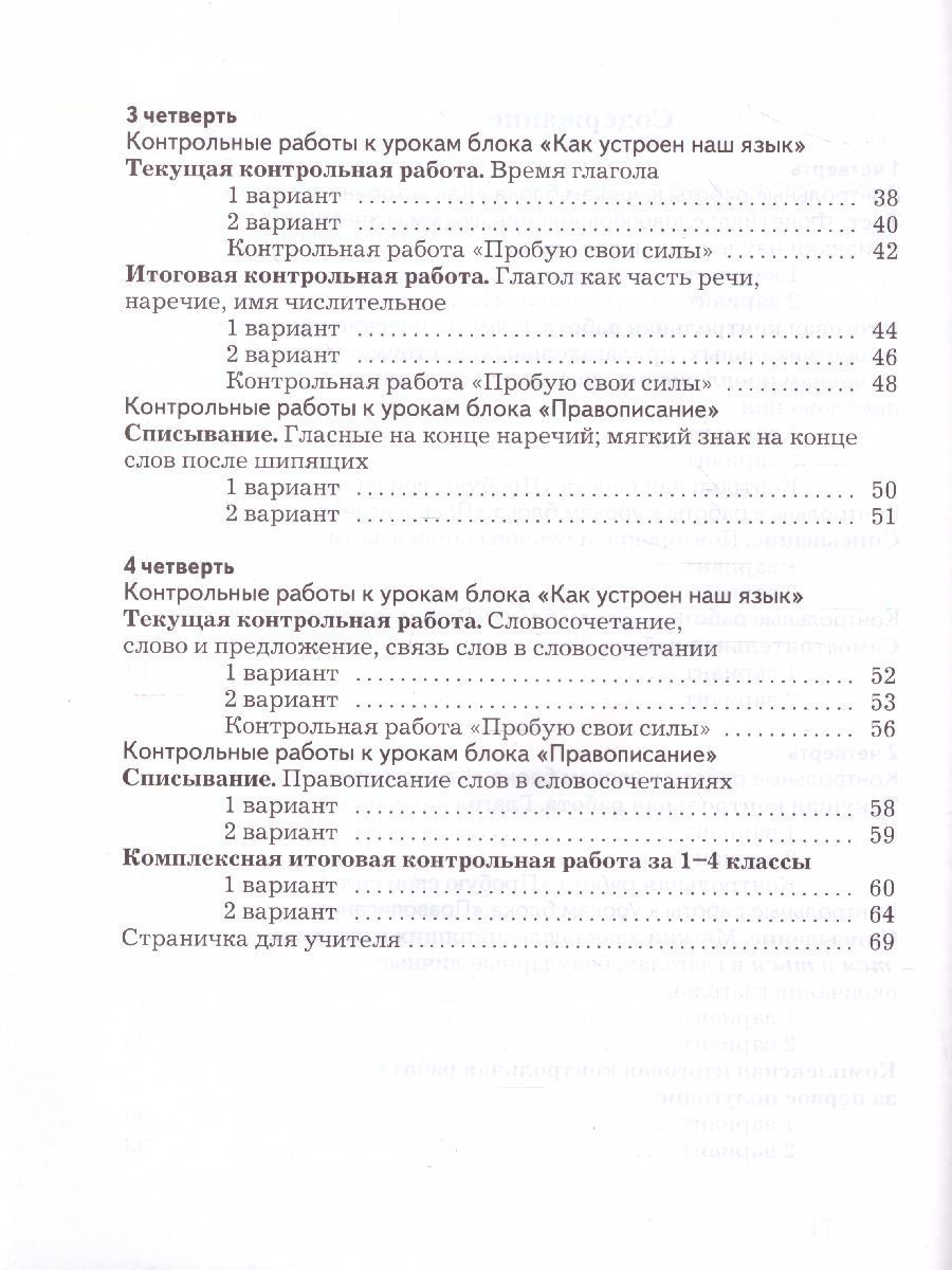 Русский язык 4 класс. Тетрадь для контрольных работ. ФГОС