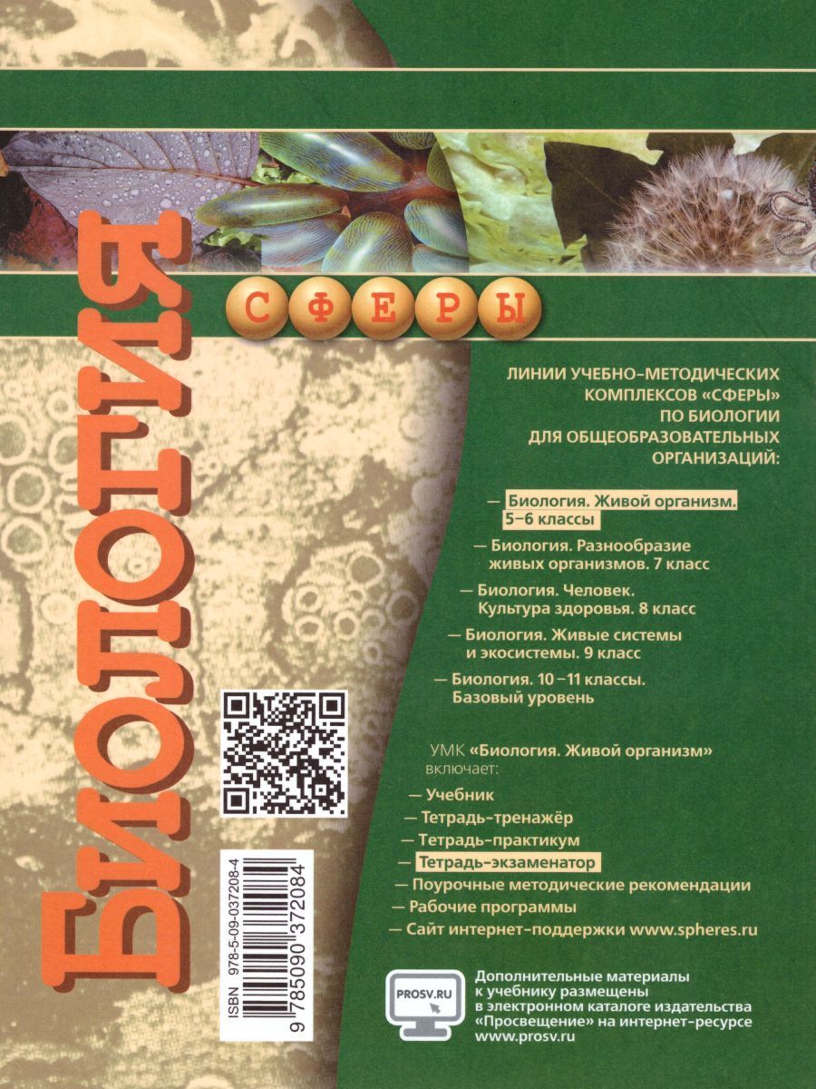 Биология 5-6 класс. Живой организм. Тетрадь-экзаменатор. УМК "Сферы"