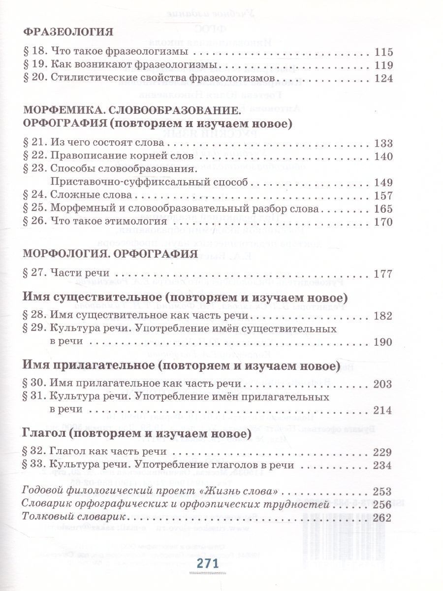 Учебник «Русский язык. 6 класс» является продолжением УМК по русскому языку для 5—9 классов. В 6 классе продолжается изучение лексики, словообразования, морфологии. В начале и конце учебника представлен материал на повторение пройденного. Система обучения, учебно-методический аппарат нашли продолжение и развитие в учебнике 6 класса. Теоретический материал, как и в учебнике 5 класса, вводится в форме текстов объясняющего характера, иногда в форме беседы автора с учеником. Продолжается систематическая работа с научным текстом. Развитие личности школьника реализуется в системе заданий, формирующих навыки самооценки, самоанализа и призванных помочь осмыслить свою деятельность, ее результаты. В учебнике осуществляется повторение и систематизация речеведческих понятий, уже изученных в 5 классе, а также изучение нового материала по речеведению. Этот раздел является теоретической основой изучения связной речи. Вводятся понятия «стилистика и стили речи».Характеристики