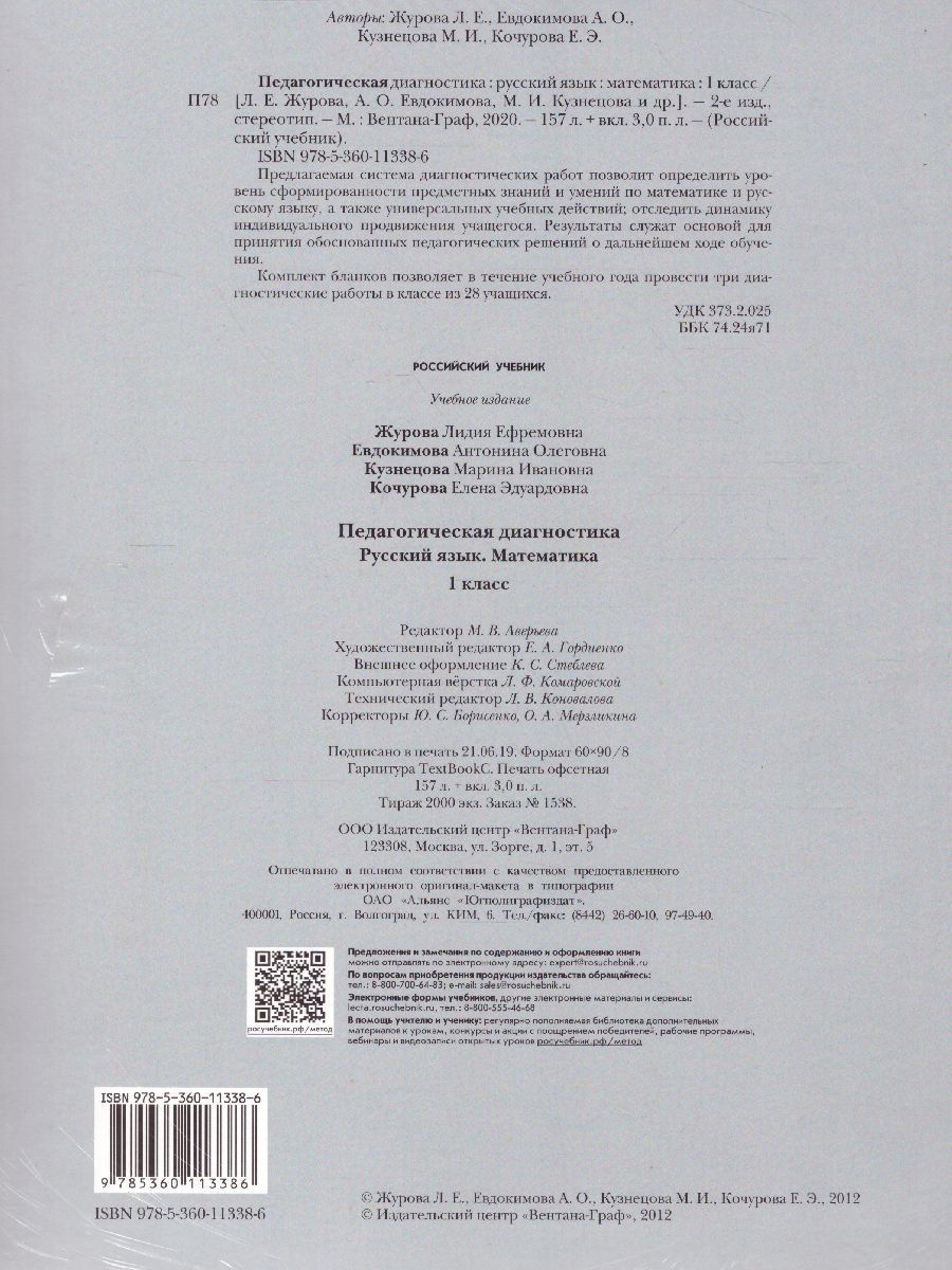 Педагогическая диагностика 1 класс. Русский язык. Математика. Комплект материалов. ФГОС