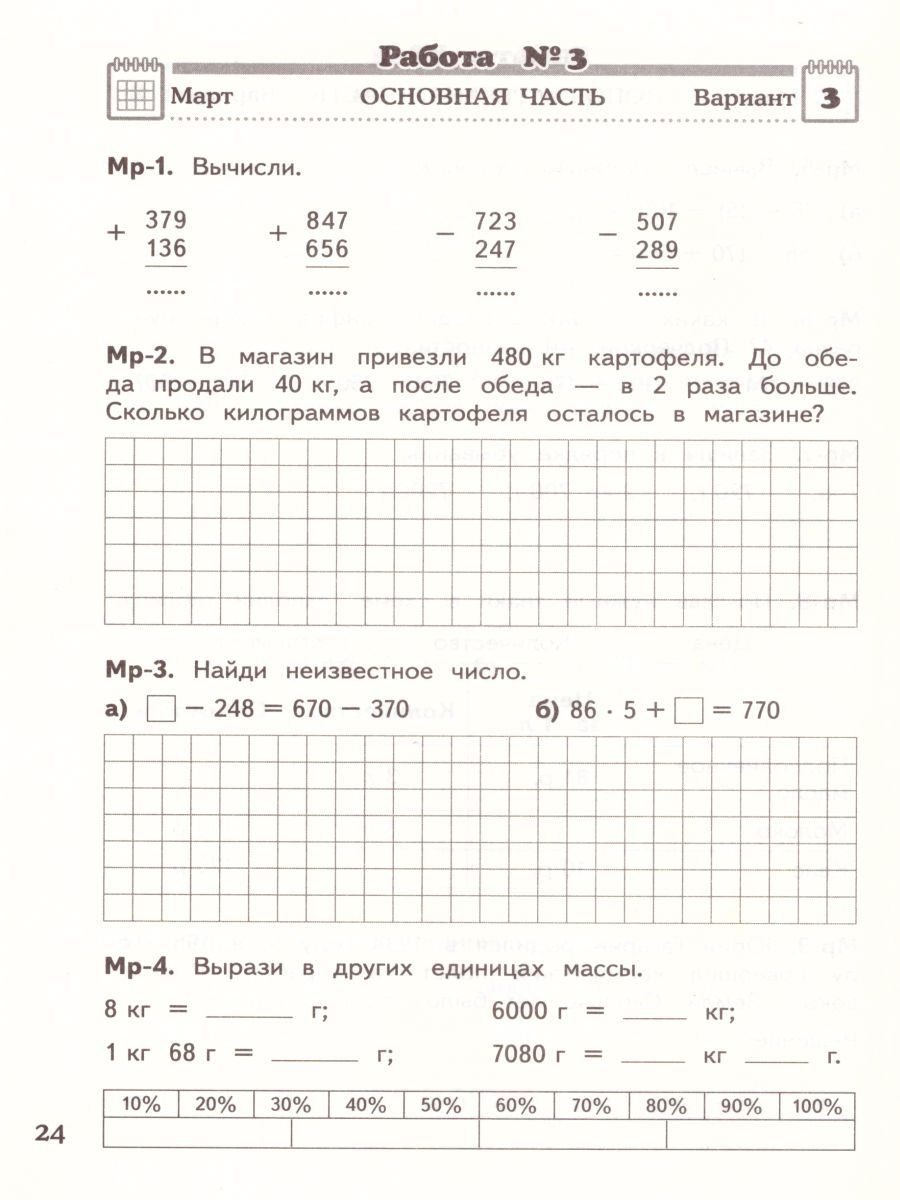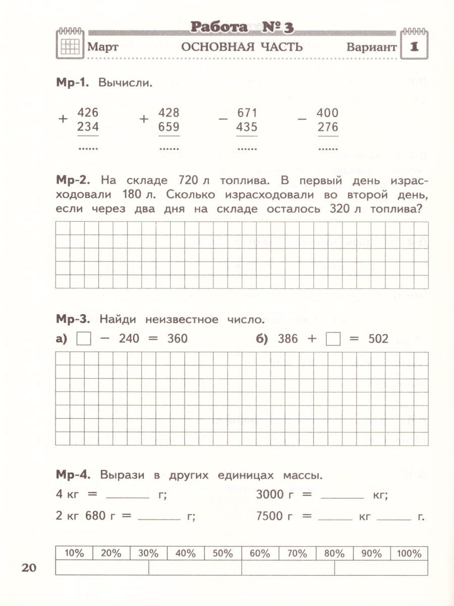 Пособие содержит контрольные работы и предназначено для организации текущего и итогового контроля в 3 классе при работе по учебнику М.И. Башмакова, М.Г. Нефёдовой "Математика. 3 класс".Материалы контрольных работ позволяют организовать проверку предметных знаний и умений, а также диагностику метапредметных результатов обучения по математике. Каждая работа представлена в четырёх вариантах (варианты 1 и 2 — уровень повышенной сложности).В пособии заложена эффективная система безотметочного оценивания достижений третьеклассников в освоении программы по математике.Характеристики