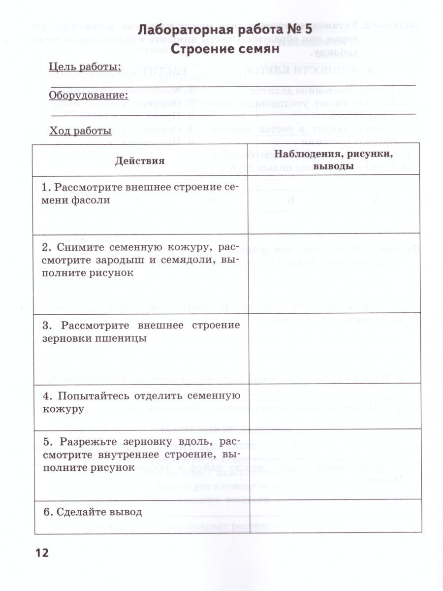 Биология 6 класс. Тетрадь для лабораторных работ. Линия Ракурс. ФГОС