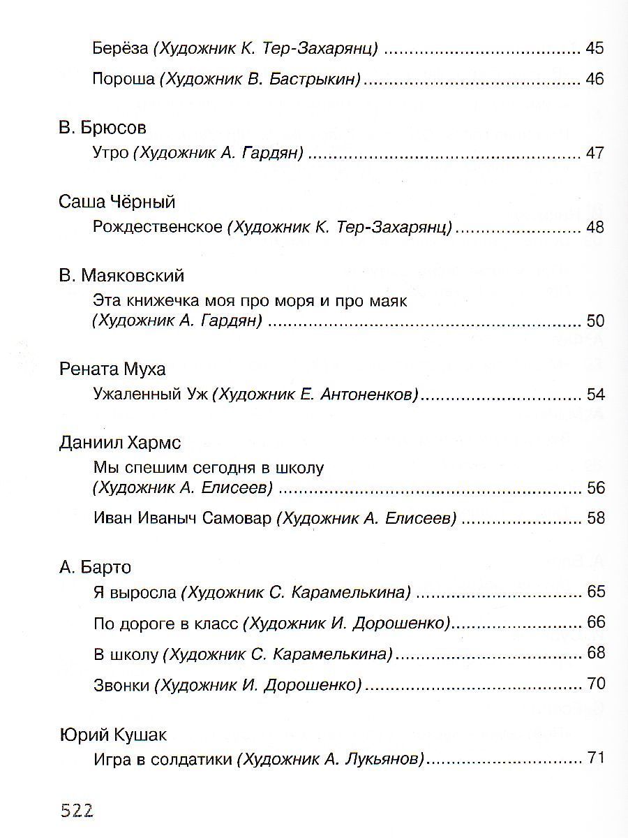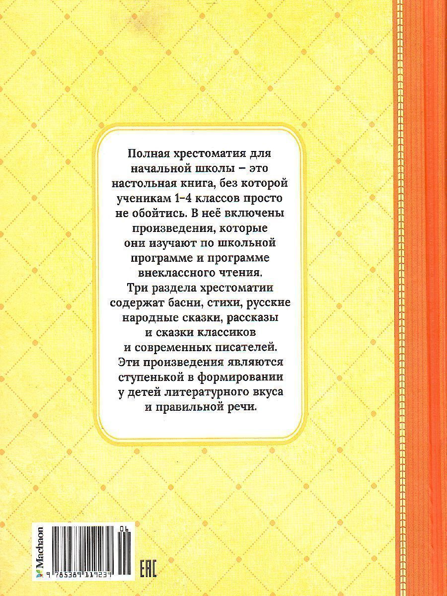 В этой хрестоматии наиболее полный охват авторов, чьи произведения составляют основу обучения детей в первых классах школы по программе и в качестве внеклассного чтения. В книге три раздела: в первом маленький школьник прочтёт басни Крылова, хрестоматийные стихи Пушкина, Некрасова, Тютчева, Есенина и других, в том числе современных, поэтов. В разделе сказок представлены самые известные русские народные сказки, а также сказки русских писателей. Последний раздел хрестоматии занимают рассказы классиков прошлых столетий. Произведения, вошедшие в хрестоматию, – это тот фундамент, на котором начинается формирование хорошего литературного вкуса у детей, развитие у них правильной речи и воспитание личности.Характеристики