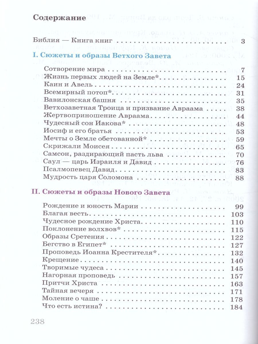 Учебник знакомит с ценнейшим достоянием человечества — произведениями искусства, созданными на библейские сюжеты. Содержит обширный иллюстративный материал, который даёт наглядное представление об изучаемых произведениях искусства. Каждый параграф завершается рубриками «Вопросы и задания для самоконтроля» и «Творческая мастерская». В конце учебника помещены словарь, список рекомендуемой литературы и интернет-источники. Учебник написан в соответствии с авторской программой курса, одобрен РАО и РАН, имеет гриф «Рекомендовано» и включён в Федеральный перечень учебников. ФГОС.Характеристики