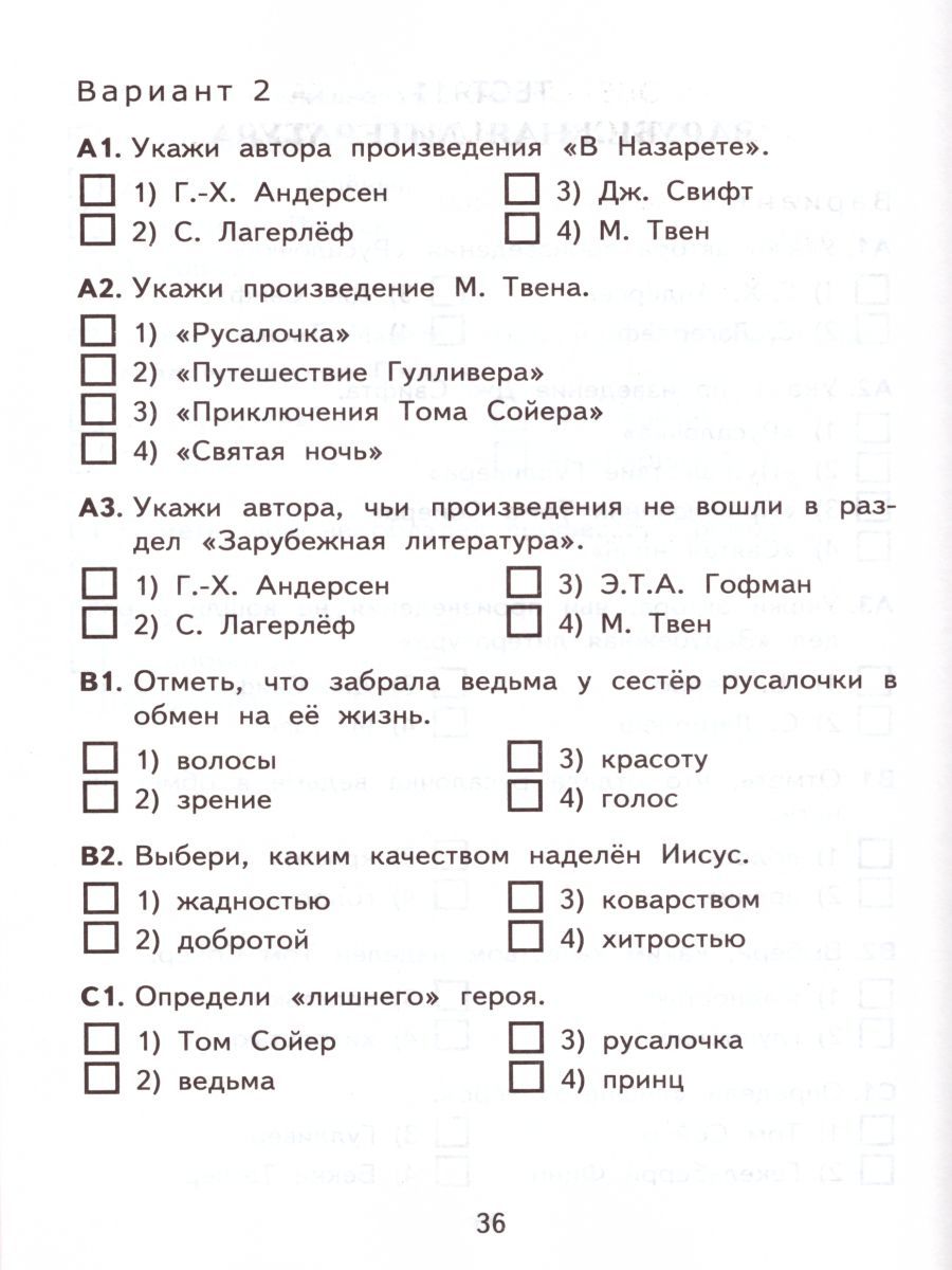 Литературное чтение 4 класс. Контрольные измерительные материалы. ФГОС