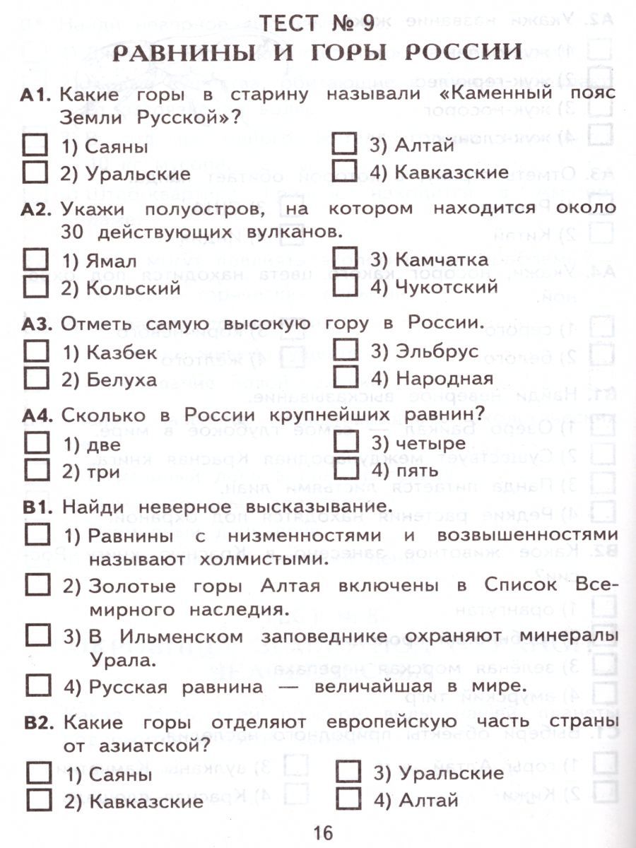 Окружающий мир 4 класс. Контрольные измерительные материалы. ФГОС