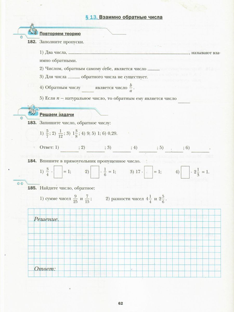 Математика 6 класс. Рабочая тетрадь. Часть 1. ФГОС