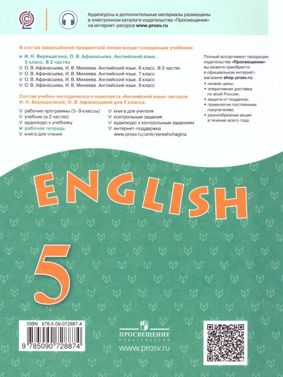 Рабочая тетрадь является составной частью учебно-методических комплекта для V класса и предназначена для учащихся общеобразовательных учреждений и школ с углублённым изучением английского языка. Тетрадь содержит разнообразные задания и упражнения как для работы в классе, так и для самостоятельной работы учащихся дома, способствующие лучшему усвоению, закреплению и повторению материала учебника.Характеристики