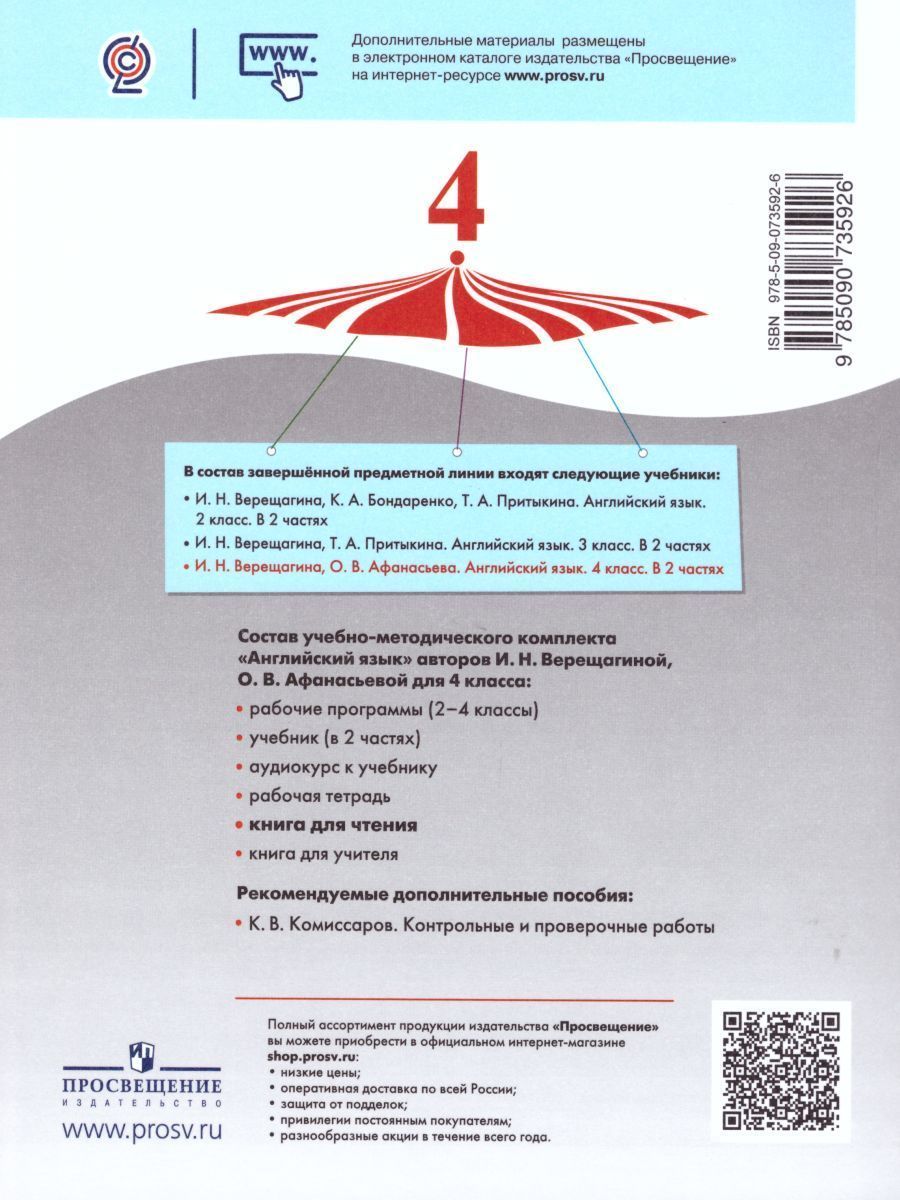 Книга для чтения является составной частью учебно-методического комплекта «Английский язык» для 4 класса, созданного в соответствии с требованиями ФГОС начального общего образования. В книгу включены отрывки из произведений популярных английских авторов, а также различные аутентичные тексты: короткие рассказы, отрывки из литературных произведений, сказки. Комплекс упражнений нацелен на развитие у учащихся умений в чтении. Книга для чтения снабжена англо-русским словарём. Она может использоваться как на уроке, так и дома.Характеристики