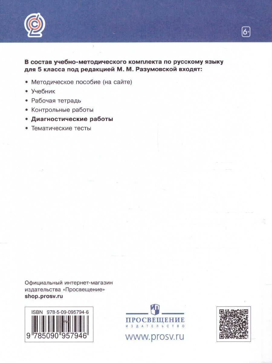 Русский язык 5 класс. Диагностические работы. К УМК под редакцией Разумовской М.М, Леканта П.А. ФГОС