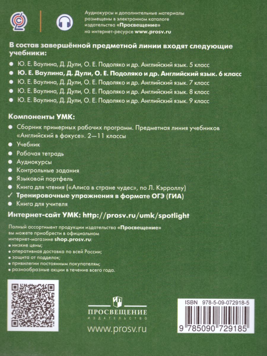 Английский в фокусе 6 класс. Spotlight. Тренировочные упражнения в формате ОГЭ (ГИА). ФГОС