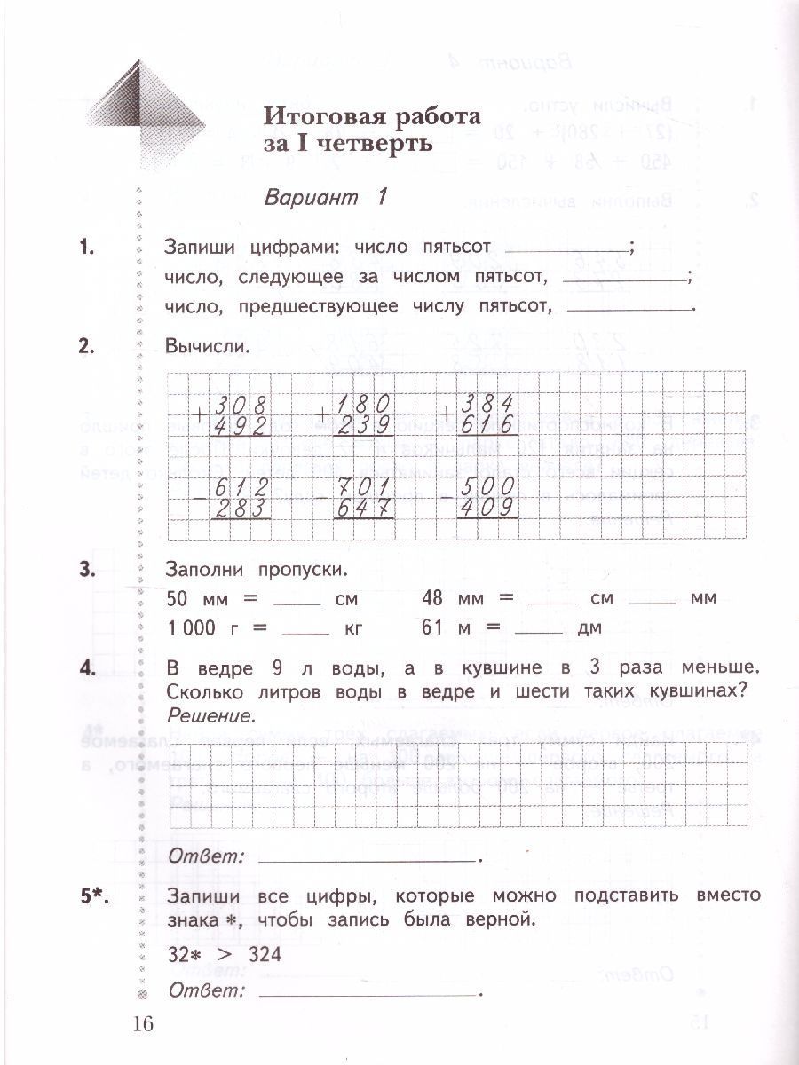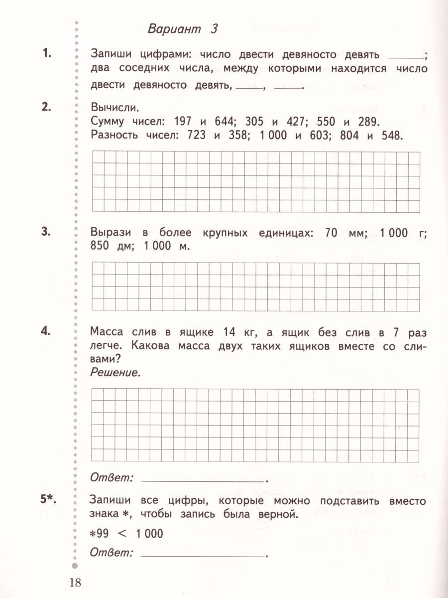 Математика 3 класс. Тетрадь для контрольных работ. ФГОС
