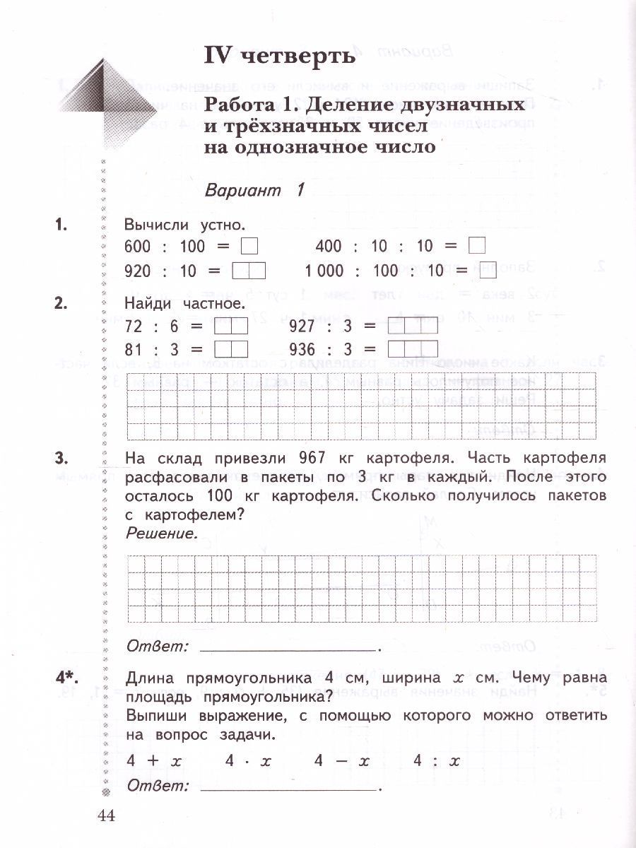 В пособии предлагаются тексты текущих контрольных работ, проводящихся в течение учебного года, а также итоговых контрольных работ, которые проводятся в конце каждой учебной четверти и годовой контрольной работы. Система заданий позволяет проводить текущий и итоговый контроль и оценивать результаты обучения детей математике в 3 классе начальной школы. Каждая работа предлагается в 4 вариантах двух уровней сложности. Пособие входит в учебно-методический комплект по математике для 1-4 классов (авторы В.Н. Рудницкая, Т.В. Юдачева), созданный в рамках проекта «Начальная школа XXI века» (научный руководитель – чл.корр. РАО проф. Н.Ф. Виноградова). Может использоваться в разных типах школ, гимназиях, классах с углубленным изучением математики. Для учащихся, учителей, руководителей школ, методистов.Характеристики