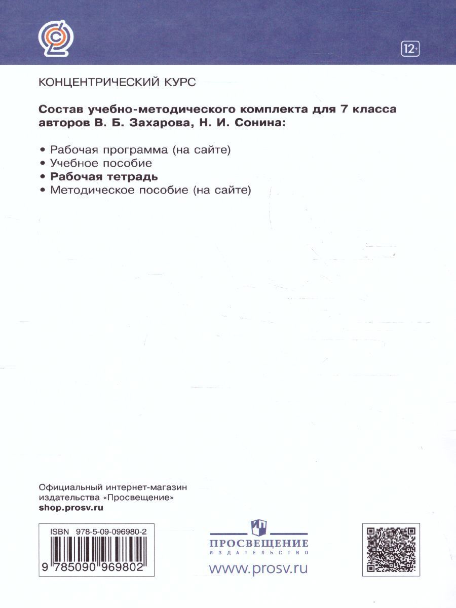 Предлагаемая тетрадь - часть учебного комплекта к учебнику В. Б. Захарова, Н. И. Сонина "Биология. Многообразие живых организмов. 7 класс". В нее включены разнообразные вопросы, задания, лабораторные работы. Материал в тетради располагается в той же последовательности, что и в учебнике. Работа с тетрадью поможет ученикам лучше освоить содержание учебника и подготовиться к успешной сдаче ЕГЭ и ГИА при помощи тестовых заданий, включенных в рабочую тетрадь. Специальными знаками отмечены задания, направленные на формирование метапредметных умений (планировать деятельность, выделять различные признаки, сравнивать, классифицировать и др.) и личностных качеств учеников.Характеристики