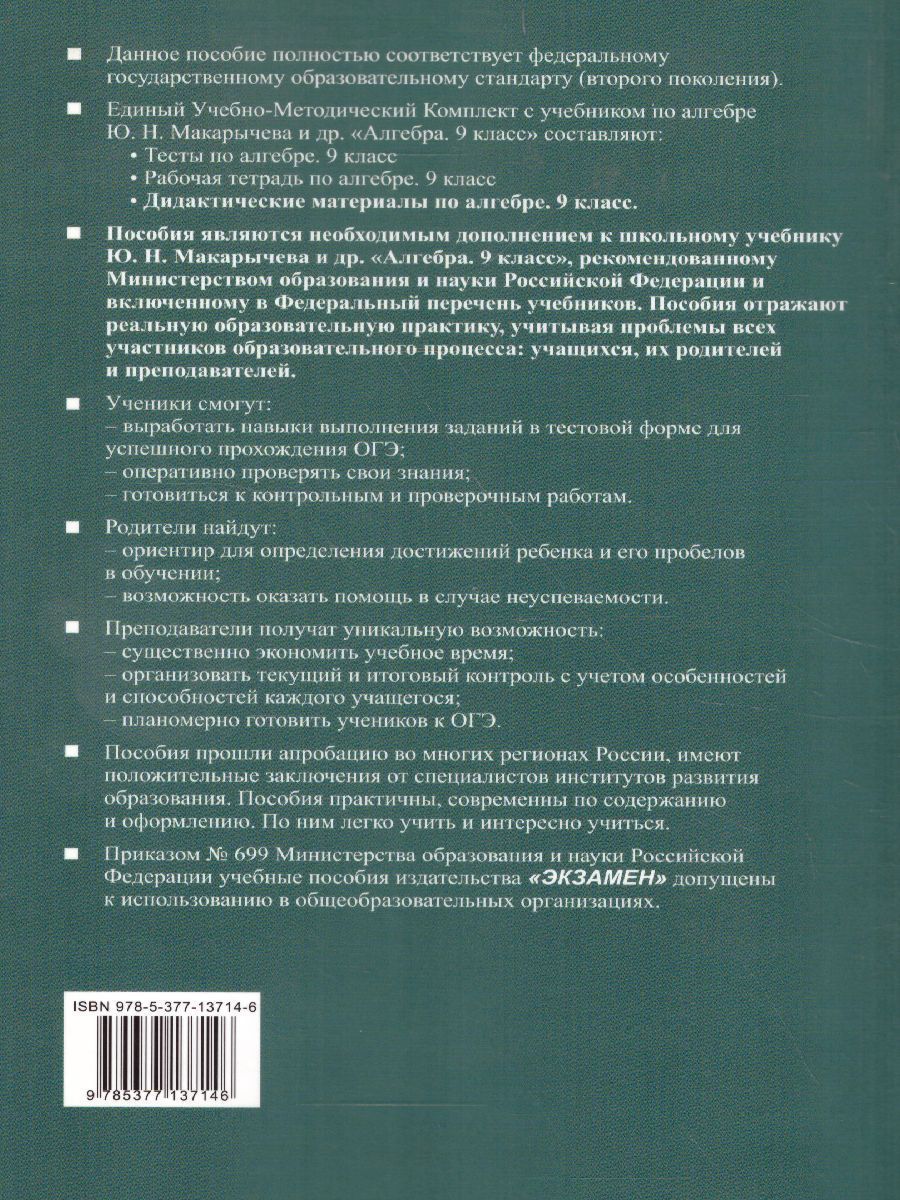 Алгебра 9 класс. Дидактические материалы. К учебнику Ю. Н. Макарычева. ФГОС