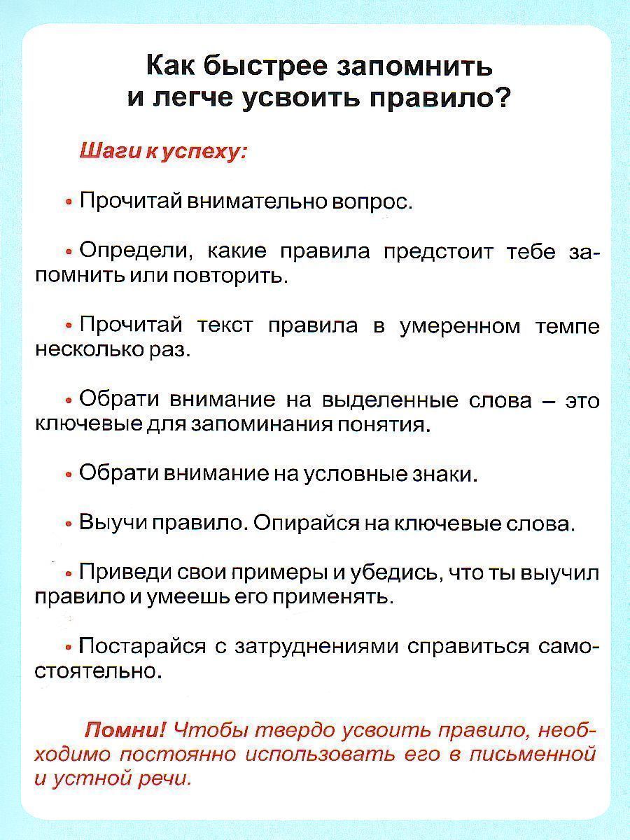 Серия наглядных плакатов "Учим правила на 5" поможет ученику начальной школы овладеть основными учебными навыками, сформировать важнейшую компетенцию личности - умение учиться и стать успешным учеником. Информация, представленная в плакатах, отражает содержание всех действующих образовательных программ и УМК начального общего образования, соответствует ФГОС.Характеристики