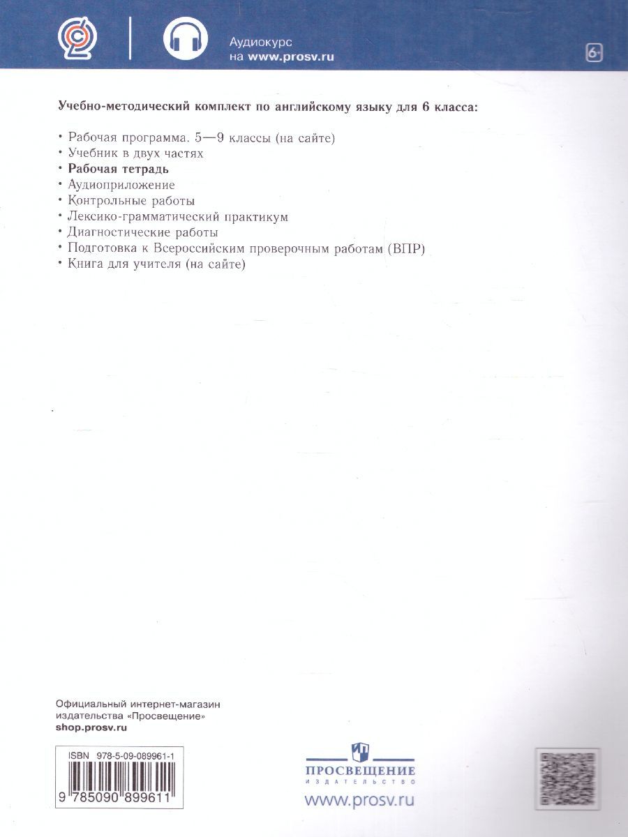 Рабочая тетрадь является составной частью УМК по английскому языку для 6 класса серии "Rainbow English" и соответствует ФГОС основного общего образования. Пособие предназначено для самостоятельной работы учащихся в школе и дома и содержит задания для повторения и закрепления изученного по учебнику материала. Специальными значками отмечены задания, направленные на формирование метапредметных умений и личностных качеств учащихся. Аудиоприложение к рабочей тетради доступно для бесплатного скачивания на сайте drofa-ventana.ru/audio.Характеристики