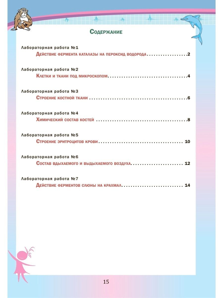 Лабораторный практикум соответствует действующей школьной программе по биологии. В пособии содержится 7 лабораторных работ, которые можно выполнять на уроке или во внеурочное время. В каждой лабораторной работе указана цель, учебное оборудование, последовательность выполняемых учащимися действий, задания для самостоятельной работы и вопросы, требующие от учеников аргументированного и обоснованного ответа. Основные результаты необходимо записать в форме ответов на вопросы, заполнения таблиц, выполнения рисунков и обозначений. Лабораторный практикум может быть адаптирован под любые учебники по биологии для 8 класса. Тетрадь предназначена ученикам 8 класса общеобразовательных школ, учителям биологии, методистам, слушателям курсов повышения квалификации.Характеристики