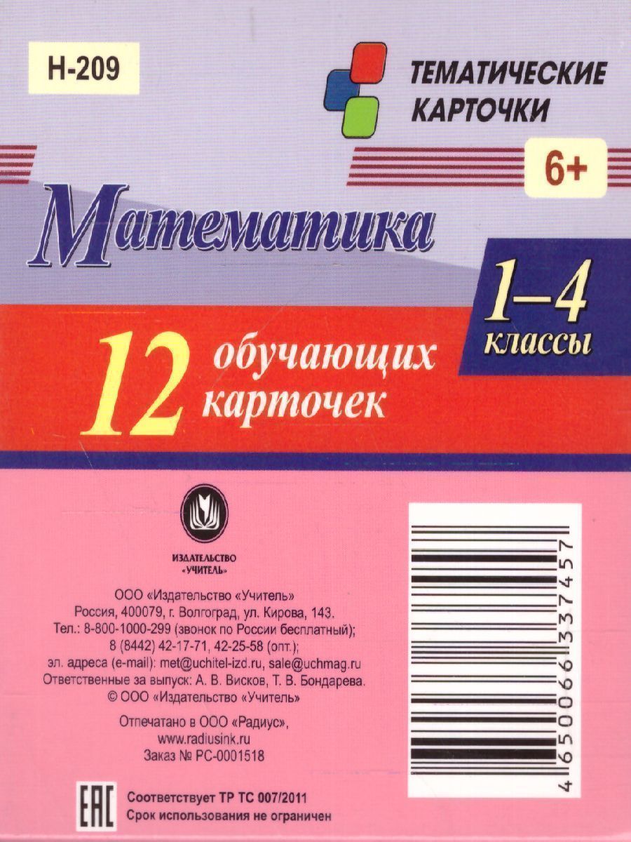 Вашему вниманию предлагается набор из 12 обучающих карточек по математике "Главные правила. Арифметические действия" с 1 по 4 классы.Характеристики