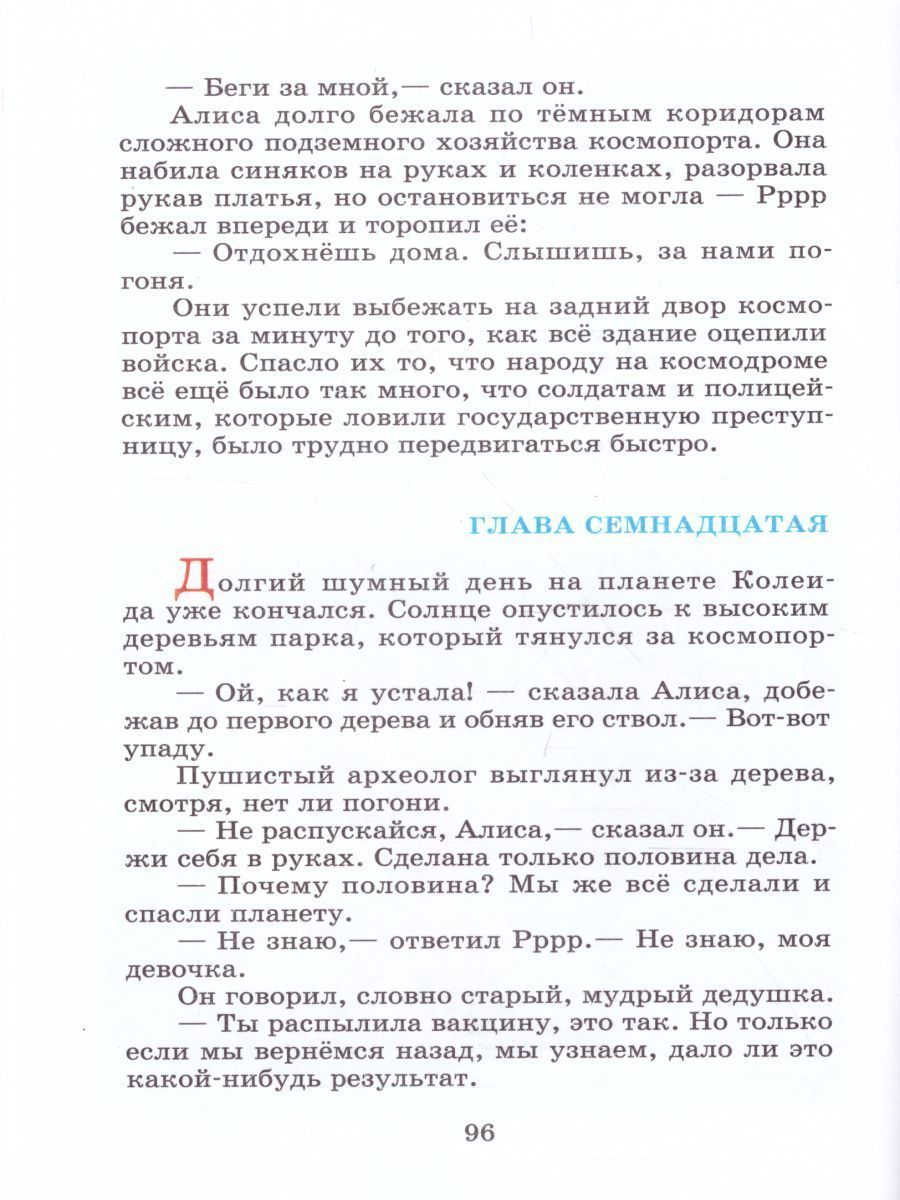 Алиса Селезнева - девочка из будущего - хорошо знакома детям и взрослым по книгам, кино и мультфильмам. Старый друг Алисиного папы космический археолог Громозека придумал для Алисы необычный подарок на день рождения. Он предлагает ей полететь в экспедицию на далекую планету Колеида. Цивилизация Колеиды погибла сто лет назад из-за эпидемии космической чумы. Алиса прилетает на мертвую планету, а затем вместе с маленьким археологом Рррр отправляется на машине времени в прошлое, чтобы уничтожить смертельный вирус и изменить будущее.Характеристики