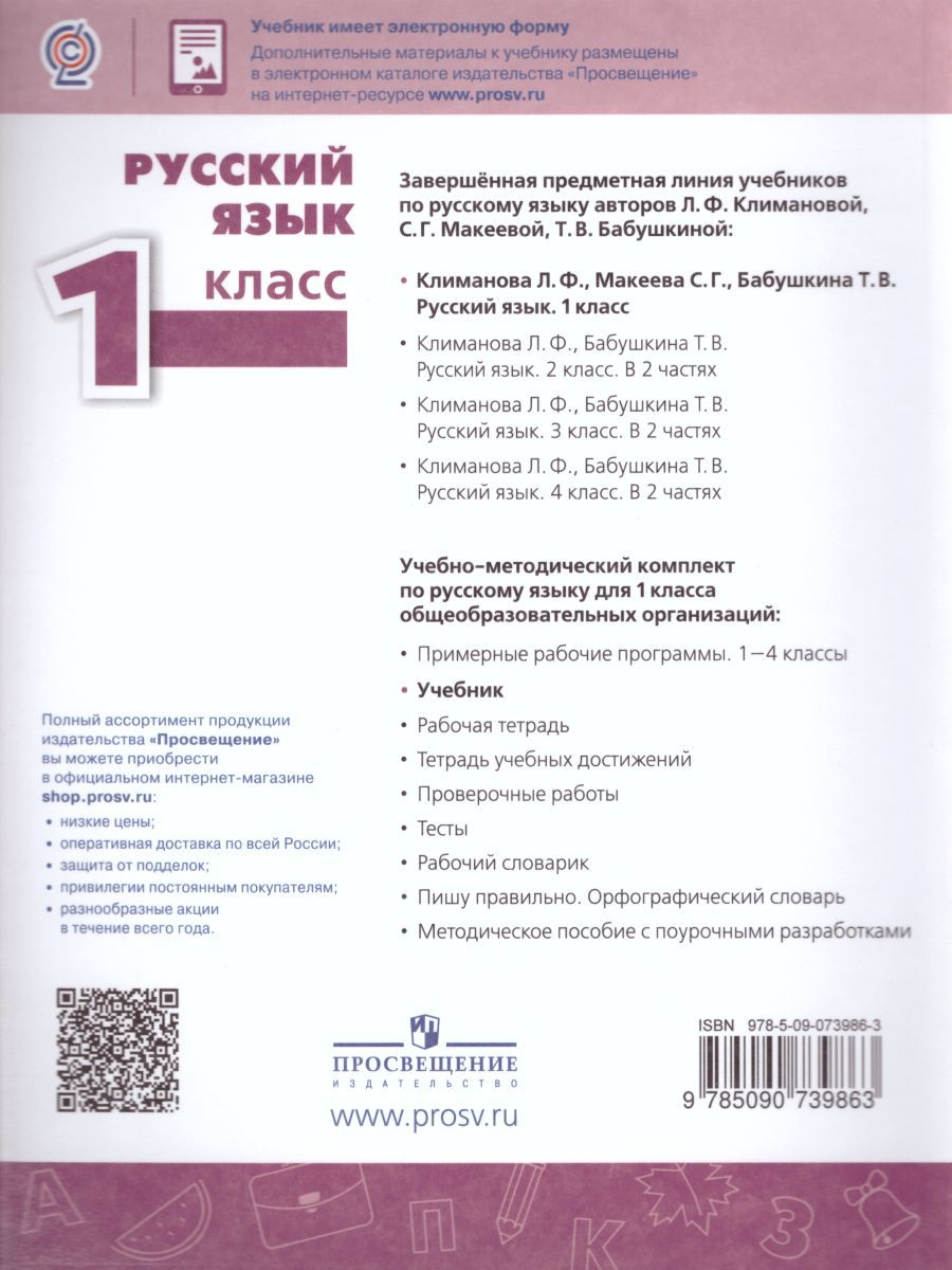 Учебник "Русский язык" входит в образовательную систему "Перспектива". Материал учебника формирует познавательные, коммуникативные и регулятивные умения, позволяет учащимся осмыслить лексическое значение слов и научиться употреблять их в различных коммуникативно-речевых ситуациях. Комплекс заданий направлен на достижение личностных, предметных и метапредметных результатов освоения Основной образовательной программы начального общего образования. Переработанный учебник имеет новое художественное оформление, усовершенствованный методический аппарат учебника — шмуцтитулы, рубрики "Наши проекты" и "Проверь себя", обновленное содержание способствуют оптимизации учебного процесса. В учебнике расширен толковый словарь, задания на работу по репродукциям картин художников, памятки. Изменено название некоторых тем, расположение ряда текстов, рисунков, последовательность заданий (в рамках одной темы). Доработаны сведения о языке, формулировки заданий, значки-символы согласных звуков в схемах слов. Включены задания на группировку, сравнение, конструирование. Учебник соответствует требованиям Федерального государственного образовательного стандарта начального общего образования.Характеристики