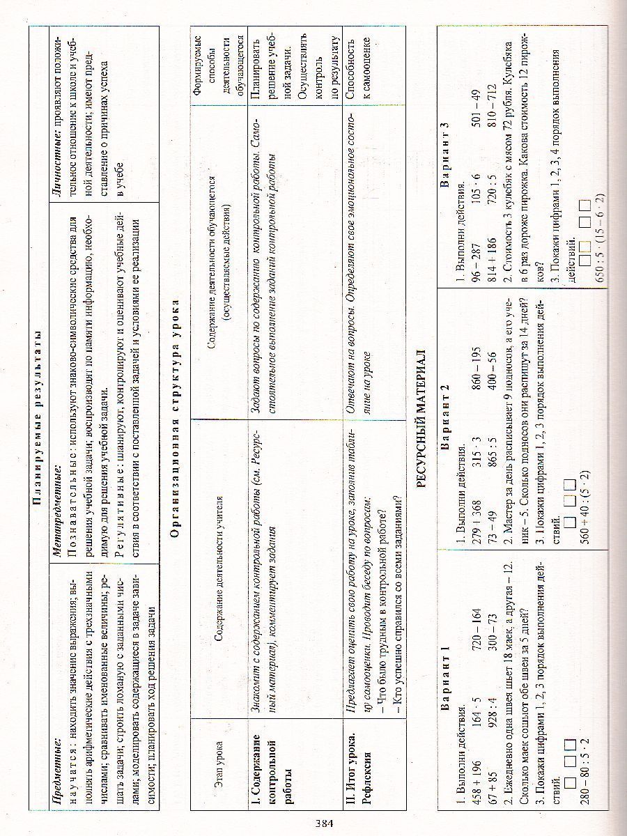 Математика 3 класс. Технологические карты по учебнику В.Н. Рудницкой. УМК "Начальная школа ХХI век"