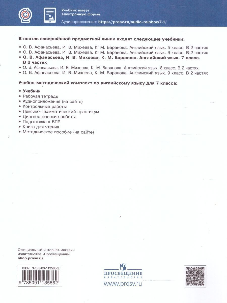 Английский язык 7 класс Rainbow English. Учебник. В 2-х частях. Часть 1. Вертикаль. ФГОС