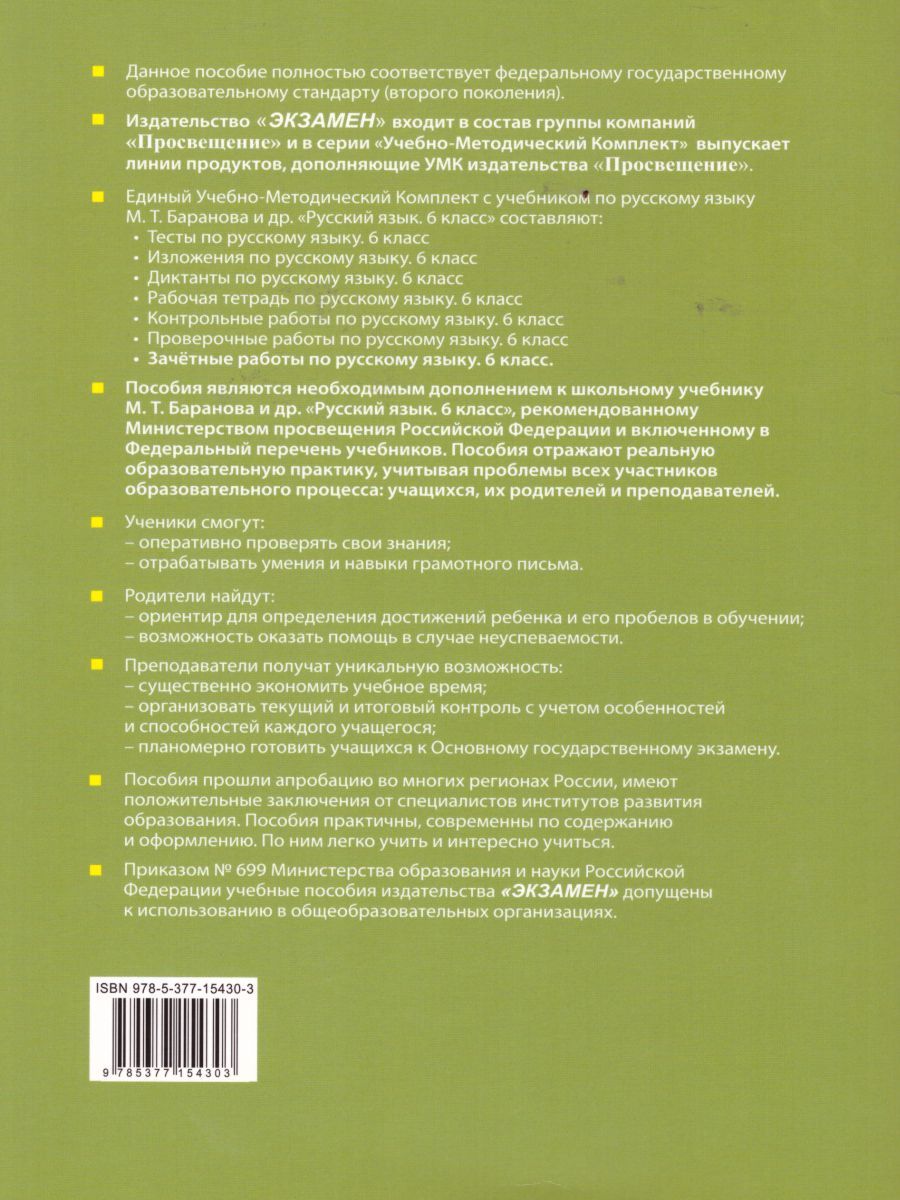 Русский язык 6 класс. Зачетные работы. ФГОС