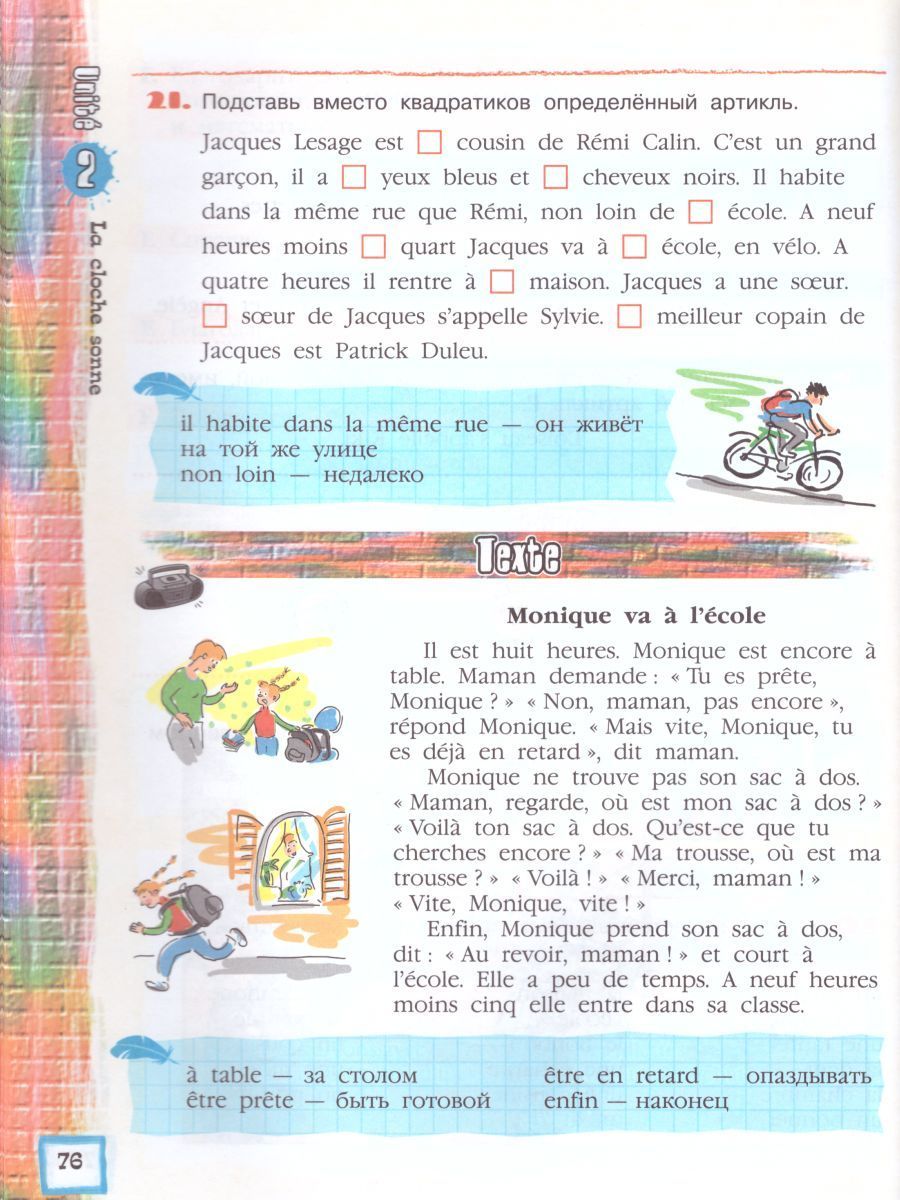 Учебник по французскому языку для 5 класса линии "Синяя птица" адресован учащимся общеобразовательных организаций, изучающим французский язык в качестве второго иностранного языка, начиная с 5 класса. Цель курса "Синяя птица" – развитие личности учащегося средствами иностранного языка и формирование способности к межкультурному и межличностному общению. В основе учебника — коммуникативно-деятельностный личностно-ориентированный подход к обучению, активизирующий различные виды речевой деятельности с помощью творческих методических приёмов. К особенностям данных учебников можно отнести следующие: • Приобщение ребёнка к языку и культуре Франции с помощью разнообразных творческих, развивающих заданий и аутентичных текстов с опорой на аудиоприложение и зрительный ряд. • Чёткая структура каждого блока - Unité. • Обширный социокультурный материал о России и Франции создаёт интерес к стране изучаемого языка, расширяет кругозор учащихся. • Применение современных технологий обучения: групповая работа, проектная деятельность, развивающее обучение с применением межпредметных связей. • Красочные иллюстрации, современный дизайн книги станет дополнительной мотивацией в изучении французского языка.Характеристики