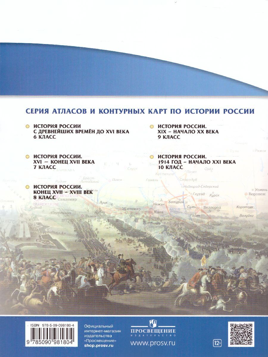 Атлас по истории России конца XVII - XVIII веков для 8 классов общеобразовательных учебных организаций. Входит в УМК к линиям учебников по истории, рекомендованным Министерством образования и науки РФ. 5-е издание, стереотипное.Характеристики