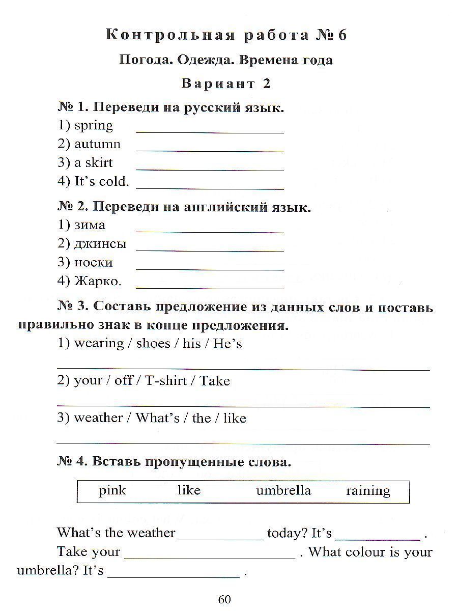 Английский язык 2 класс. Поурочный тематический контроль. УМК Быковой