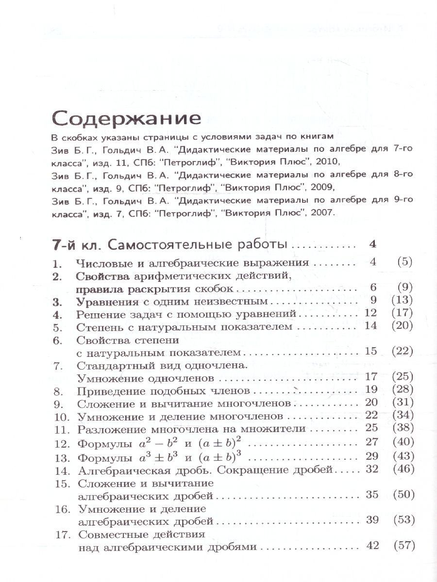 Данное пособие содержит подробное решение задач из популярных сборников дидактических материалов по алгебре для 7, 8 и 9 классов. Приведены решения задач только нечетных вариантов, т.к. все задачи из парных четных вариантов решаются точно по такому же алгоритму. Пособие может быть использовано как для контроля учащихся со стороны учителей и родителей, так и для самостоятельных занятий школьников.Характеристики