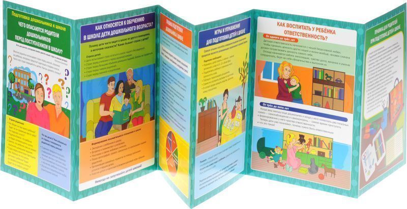 Взаимодействие с семьей - актуальное направление ФГОС ДО. Ширма из 6 красочных страниц для информационного просвещения родителей содержит ответы на вопросы: - Чего опасаются родители дошкольников перед их поступлением в школу? - Как относятся к обучению в школе дети дошкольного возраста? - Какие психические процессы важно развивать у дошкольника? - Какие игры и упражнения необходимы для подготовки детей к школе? Адресовано воспитателям, психологам, педагогам дополнительного образования, родителям.Характеристики