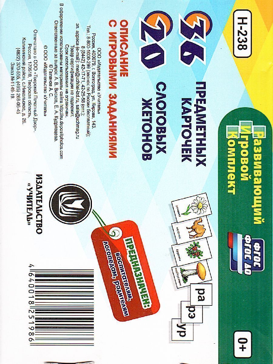 Предлагаемый развивающий игровой комплект из 10 игр поможет научить детей правильно произносить звуки, развить творческое мышление, образную память, мелкую моторику рук, воображение и фантазию. Ребенок научится классифицировать предметы по различным основаниям, познакомится с буквами. Игры составлены с учетом положений ФГОС и последних достижений в области нейропсихологических исследований, ориентированы на применение в зависимости от интеллектуального уровня развития ребенка и построены так, что задания на закрепление правильного произношения звука органично вплетены в ход игр и наполнены для детей смыслом. Элемент соревновательности вызывает у ребенка желание правильно выполнить задание и еще раз повторить игру (выиграть), что очень важно для закрепления правильного произношения. Картинки любого задания можно использовать в различных игровых вариантах и ситуациях, описание которых представлено в методическом сопровождении, что позволяет расширить диапазон игр и возможности использования комплекта как для занятий с одним ребенком, так и с группой детей из 5-7 человек. Большой ассортимент игр позволяет подобрать нужные в зависимости от уровня индивидуального развития ребенка.Характеристики