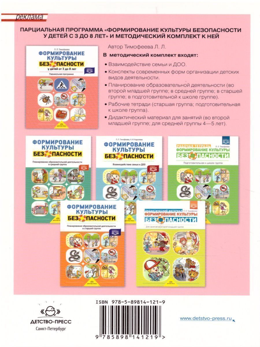 Учебное пособие включает программу для дошкольных образовательных учреждений «Основы безопасности детей дошкольного возраста» и систему развивающих заданий для детей старшего дошкольного возраста. Задания предполагают разные формы взаимодействия детей и взрослых (игры, тренинги, занятия, беседы) и направлены на формирование основ экологической культуры, ценностей здорового образа жизни, осторожного обращения с опасными предметами, безопасного поведения на улице.Характеристики