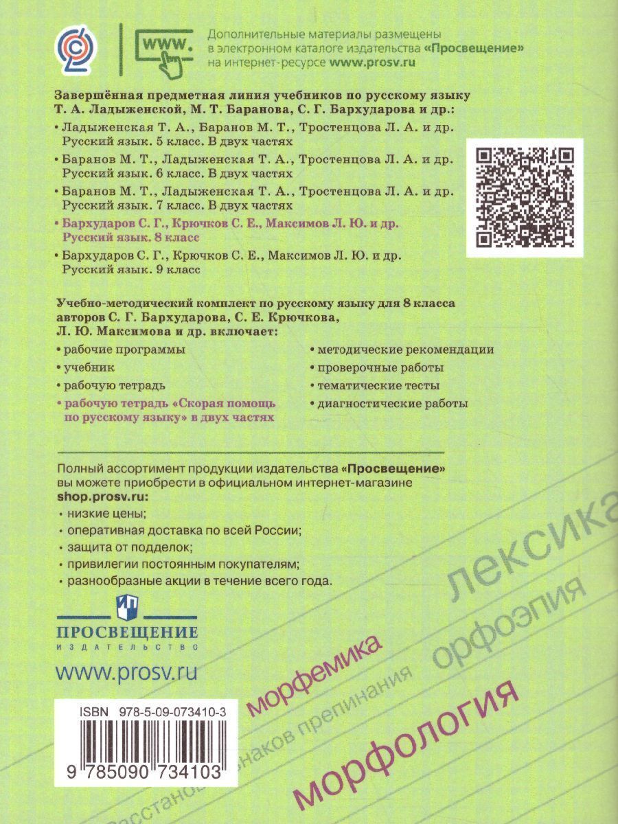 Скорая помощь по Русскому языку 8 класс. Рабочая тетрадь. Часть 2