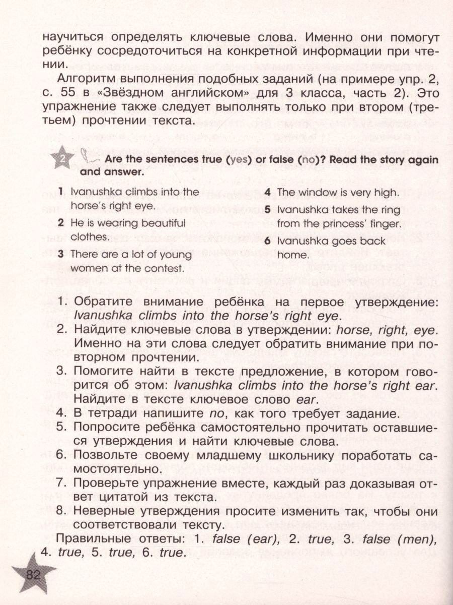 Линия УМК «Звездный английский» (2–4 классы) Пособие содержит комментарии к упражнениям, рекомендации по работе с материалом учебников и рабочих тетрадей учебно-методических комплектов «Звёздный английский» для 3 и 4 классов общеобразовательных организаций и школ с углублённым изучением английского языка и ключи к упражнениям этих компонентов. Пособие предназначено для родителей, желающих помочь своему ребёнку восполнить пробелы знаний в изучении английского языка.Характеристики