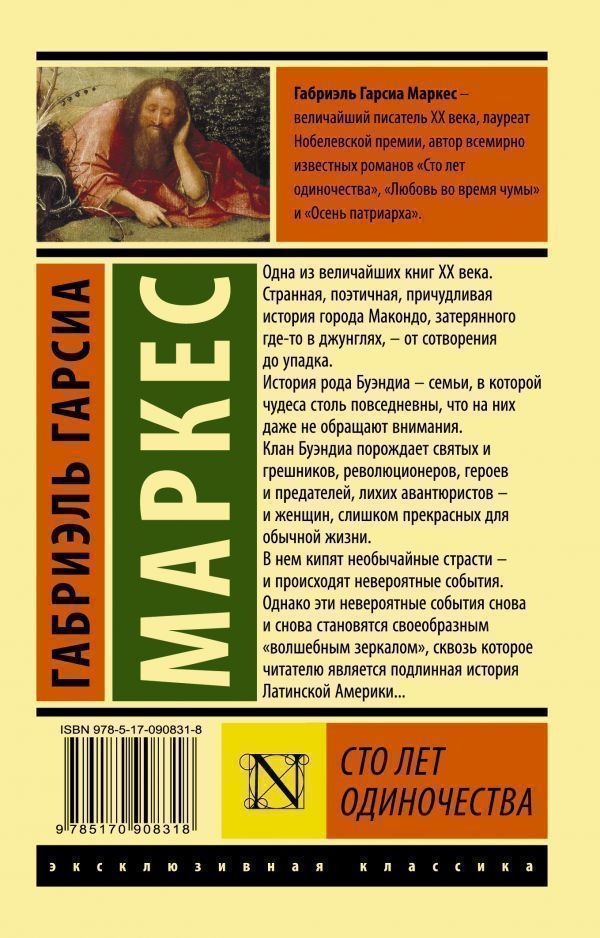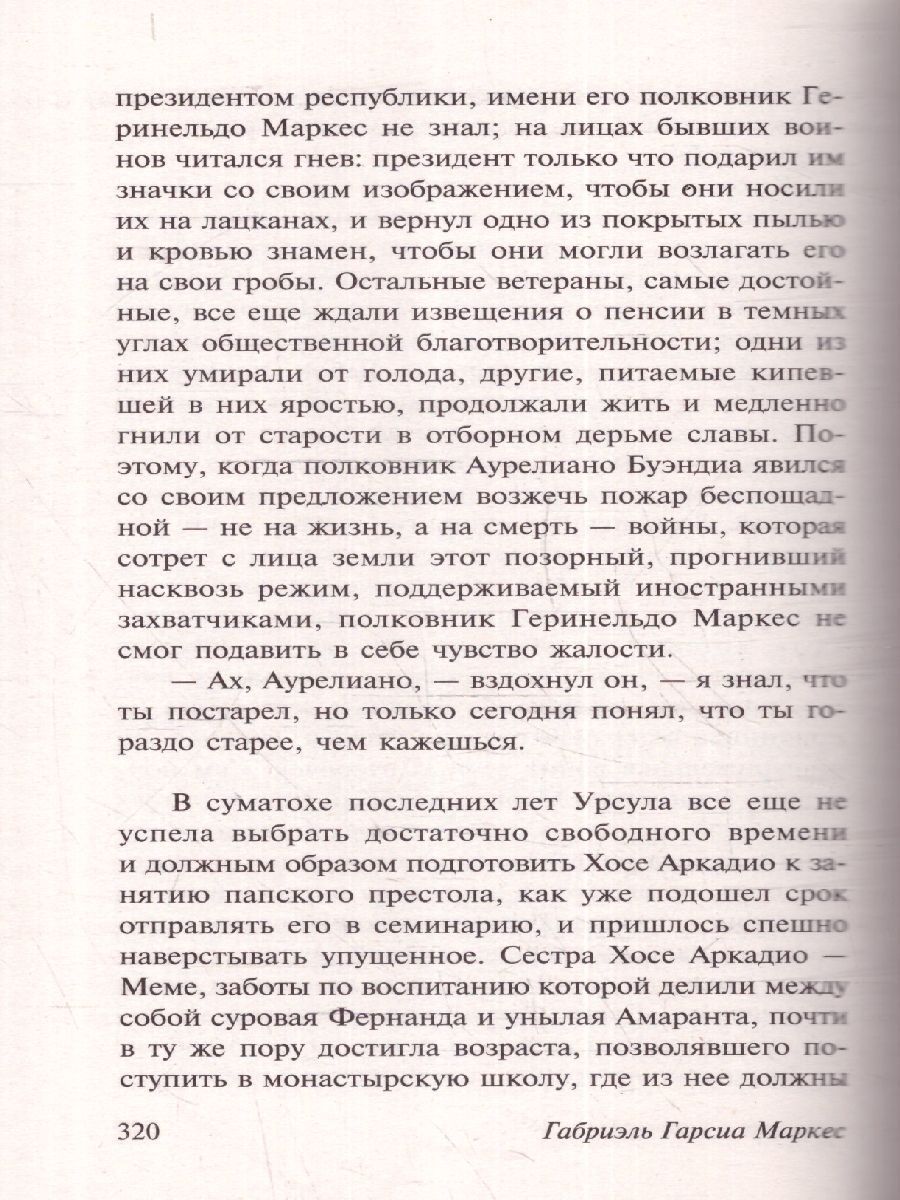 Одна из величайших книг ХХ века. Странная, поэтичная, причудливая история города Макондо, затерянного где-то в джунглях, - от сотворения до упадка. История рода Буэндиа - семьи, в которой чудеса столь повседневны, что на них даже не обращают внимания. Клан Буэндиа порождает святых и грешников, революционеров, героев и предателей, лихих авантюристов - и женщин, слишком прекрасных для обычной жизни. В нем кипят необычайные страсти - и происходят невероятные события. Однако эти невероятные события снова и снова становятся своеобразным "волшебным зеркалом", сквозь которое читателю является подлинная история Латинской Америки...Характеристики