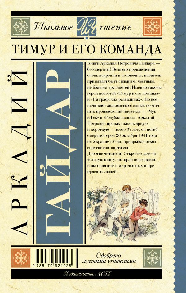 В книгу "Тимур и его команда" вошли наиболее известные произведения А.П.Гайдара (1904 – 1941): "Чук и Гек", "Голубая чашка", "Тимур и его команда", "На графских развалинах".Характеристики