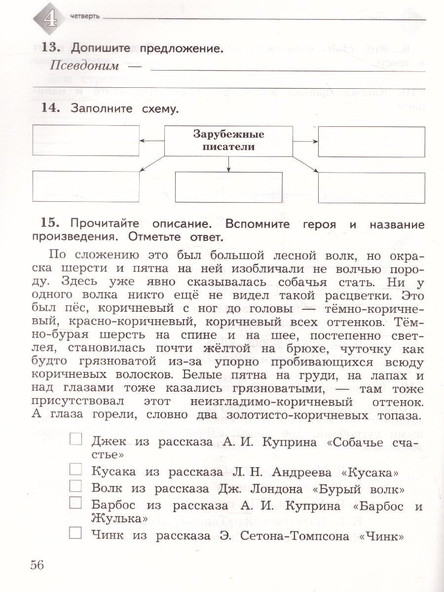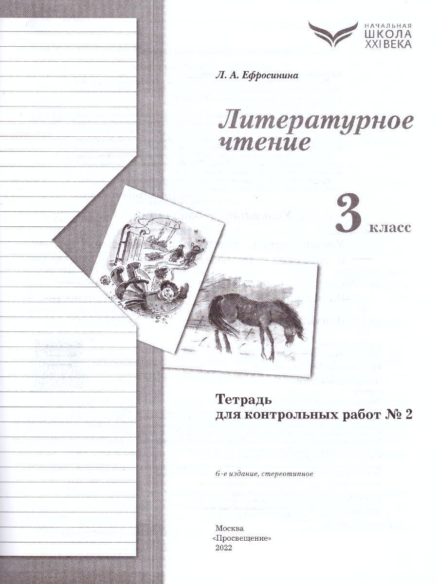 Литературное чтение 3 класс. Тетрадь для контрольных работ №2. ФГОС