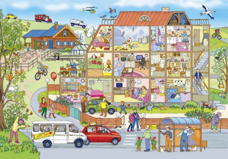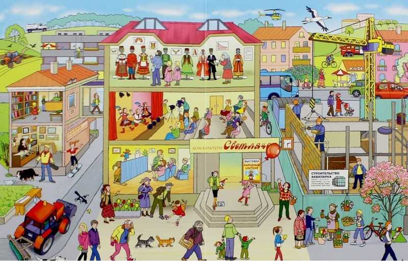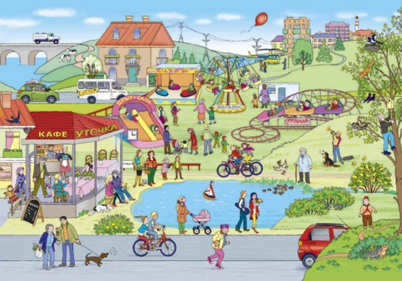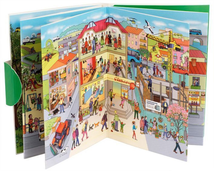 Книга рассказывает об одном весеннем дне из жизни маленького городка. Его жители спешат по своим обычным делам, а с некоторыми происходят разные забавные приключения. В книге очень много деталей, и по её страничкам можно бродить бесконечно. Это прекрасное пособие для развития внимания и обучения детей рассказу по картинкам. В конце книги вы найдёте занимательные задания к каждому развороту. Адресовано детям старше 3 лет. + Более 50 персонажей на каждом из 5 разворотов. + 16 заданий - найди, сосчитай, назови. + Удобный компактный формат.Характеристики