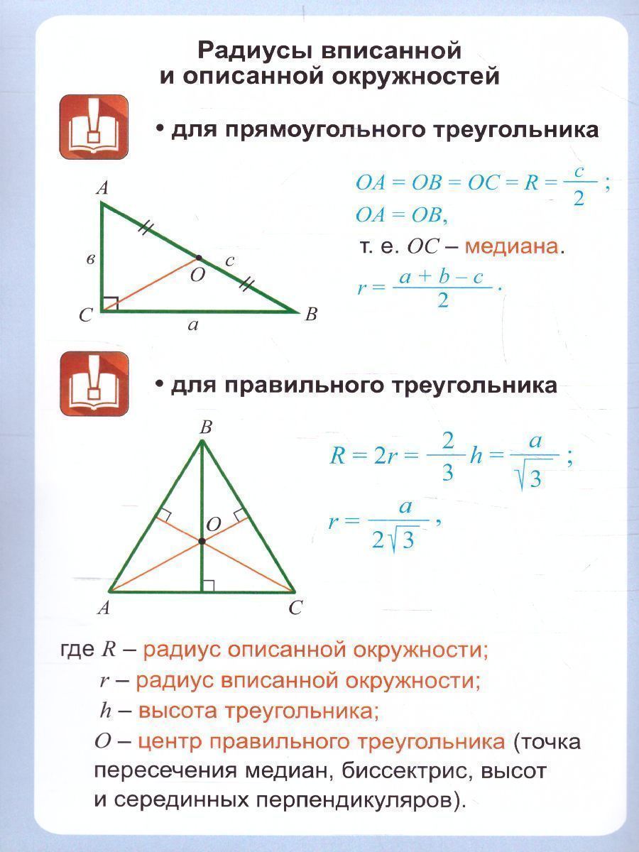 Геометрия 7-11 класс. Треугольник Вписанная и описанная окружности. Таблица-плакат