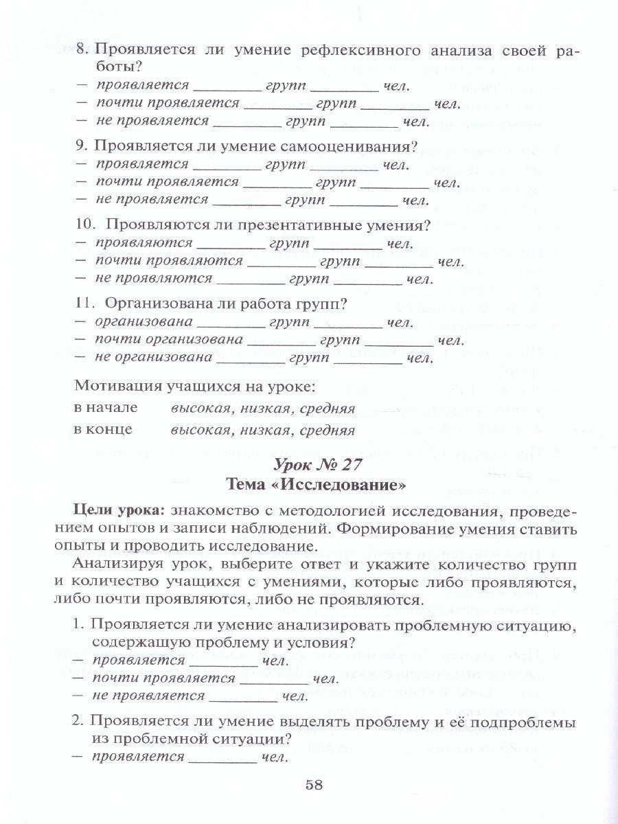 Курс "Проектная деятельность" построен на основе системы заданий для организации учебного процесса на деятельностной основе и нацелен на формирование у младших школьников проектных умений минимального уровня сложности. В предлагаемом методическом пособии изложены цели обучения, формы и методы проведения занятий, система заданий и сценарии уроков с поминутной разработкой, комментариями и методическими рекомендациями, а также система оценивания успешности работы обучающихся. В Приложении указаны раздаточные материалы, необходимые для групповой работы на каждом уроке. Программа курса, методическое пособие для учителя, рабочая тетрадь и раздаточные материалы (в наборе или на диске) для групповой работы обучающихся составляют единый учебно-методический комплект.Характеристики