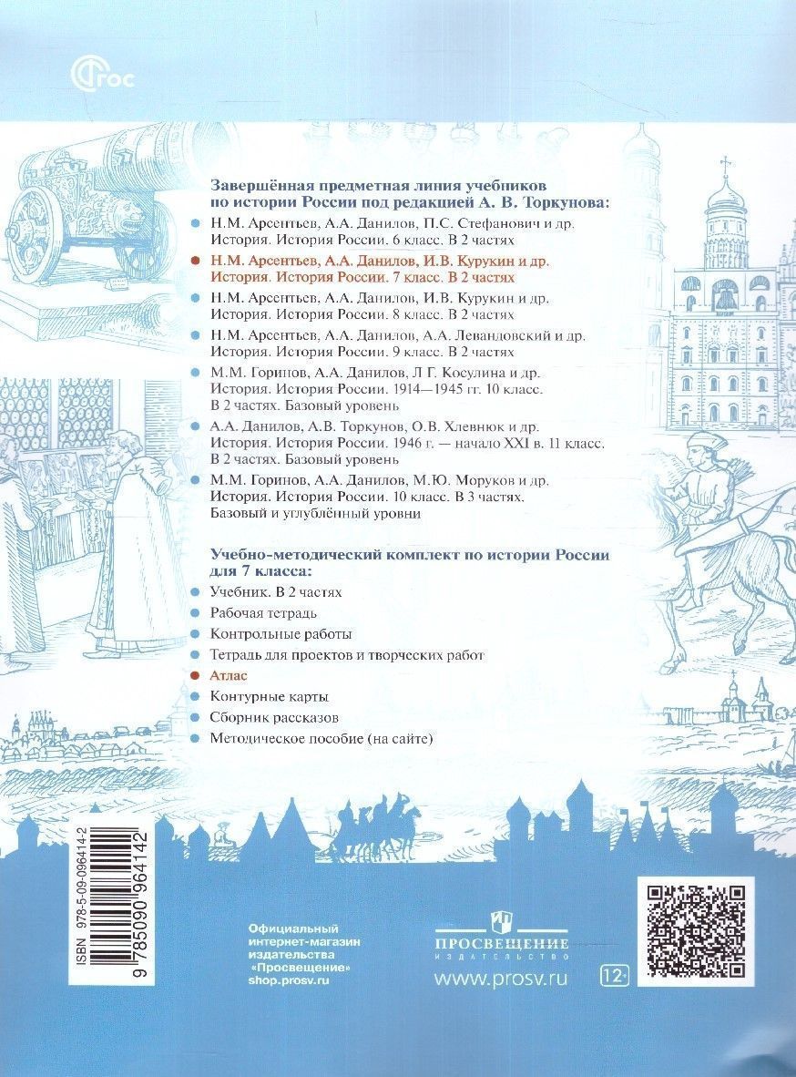 Атлас является составной частью УМК по истории России под редакцией А.В. Торкунова и представляет собой современное учебное иллюстрированное картографическое издание. Каждый тематический разворот атласа содержит комплекс взаимосвязанных информационно-методических материалов (основные и дополнительные карты, объемные схемы, иллюстрации и пр.), освещающих одну тему и обеспечивающих комплексный подход к подаче информации. Атлас может быть использован с любым из действующих учебников по истории для 7 класса.Характеристики