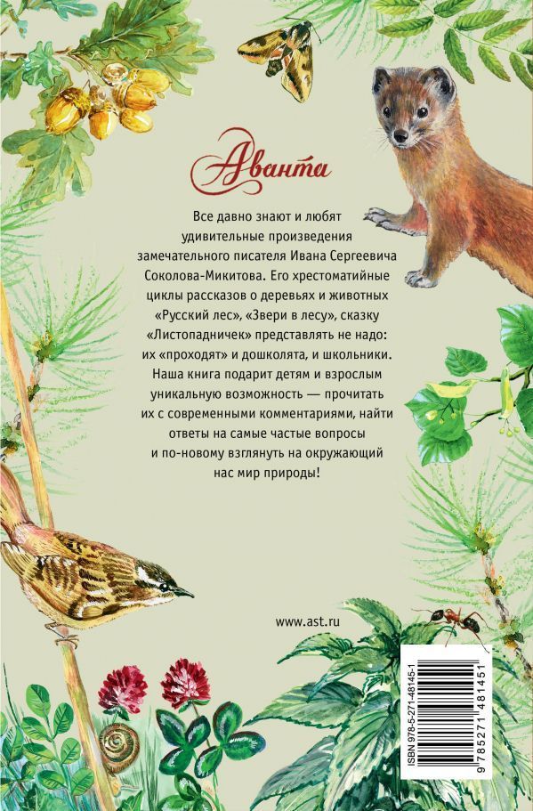 Все давно знают и любят удивительные произведения замечательного писателя Ивана Сергеевича Соколова-Микитова. Его хрестоматийные циклы рассказов о деревях и животных "Русский лес", "Звери в лесу", сказку "Листопадничек" представлять не надо: их "проходят" и дошколята, и школьники. Наша книга подарит детям и взрослым уникальную возможность — прочитать их с современными комментариями, найти ответы на самые частые вопросы и по-новому взглянуть на окружающий нас мир природы!Характеристики