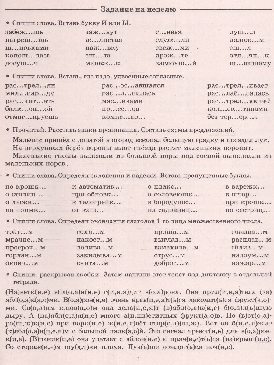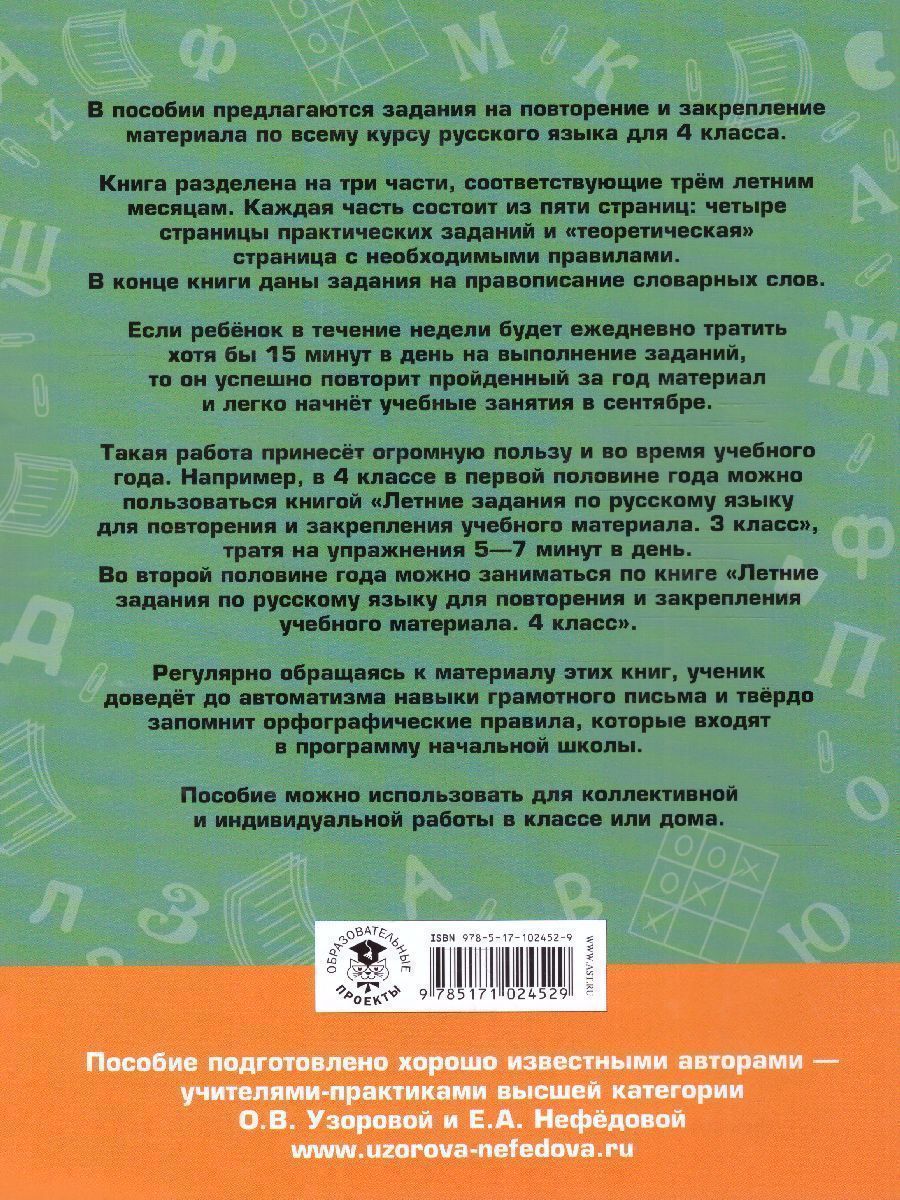 Летние задания по русскому языку для повторения и закрепления учебного материала 4 класс