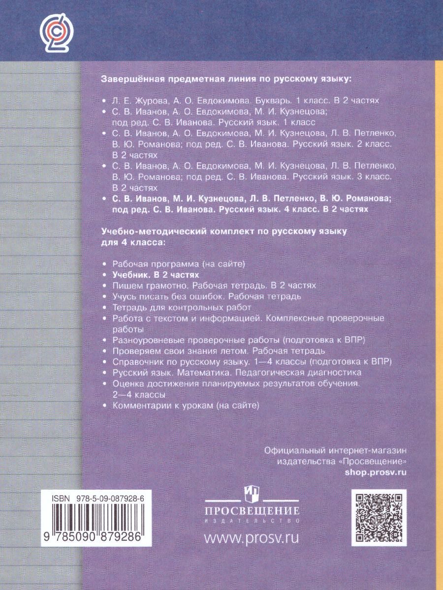 Русский язык 4 класс. Учебник. Часть 2 .ФГОС