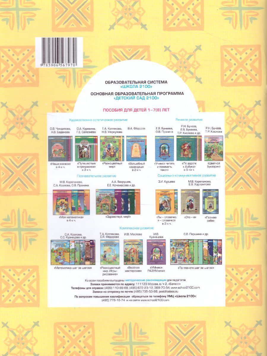 Разноцветный мир. Учебное пособие для детей 5-6 лет. Часть 3. ФГОС Учебное пособие предназначено для художественно-эстетического развития детей 5-6 лет, направлено на формирование у ребёнка целостной картины мира через изобразительную деятельность. Является начальным звеном авторского курса по изобразительному искусству. Обеспечивает комплексный подход к решению задач ФГОС дошкольного образования. Может использоваться в дошкольных образовательных организациях, организациях дополнительного образования, а также для индивидуальных занятий родителей с детьми. Все тексты, включённые в данное учебное пособие, предназначены для чтения взрослыми (педагогами, родителями) детям.Характеристики
