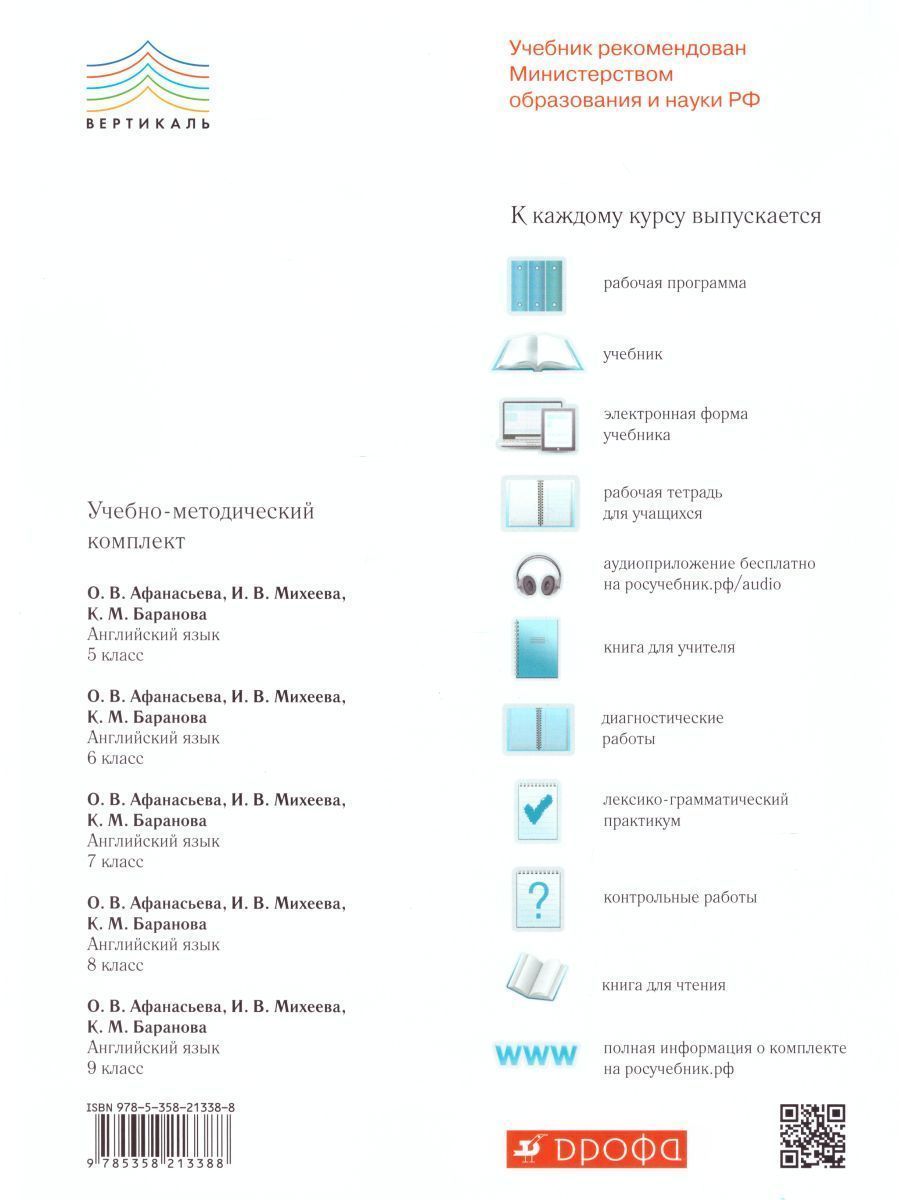 Контрольные работы являются неотъемлемой частью учебно-методического комплекта "Английский язык" для 7 класса серии "Rainbow English" авторов О. В. Афанасьевой, И. В. Михеевой, К. М. Барановой. Данное пособие включает в себя контрольные работы по учебным ситуациям, предлагаемым в УМК для 7 класса, а также полугодовую и годовую контрольные работы.Характеристики